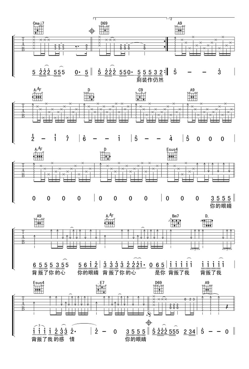 当前位置:琴谱网>吉他弹唱>你的眼睛背叛了你的心