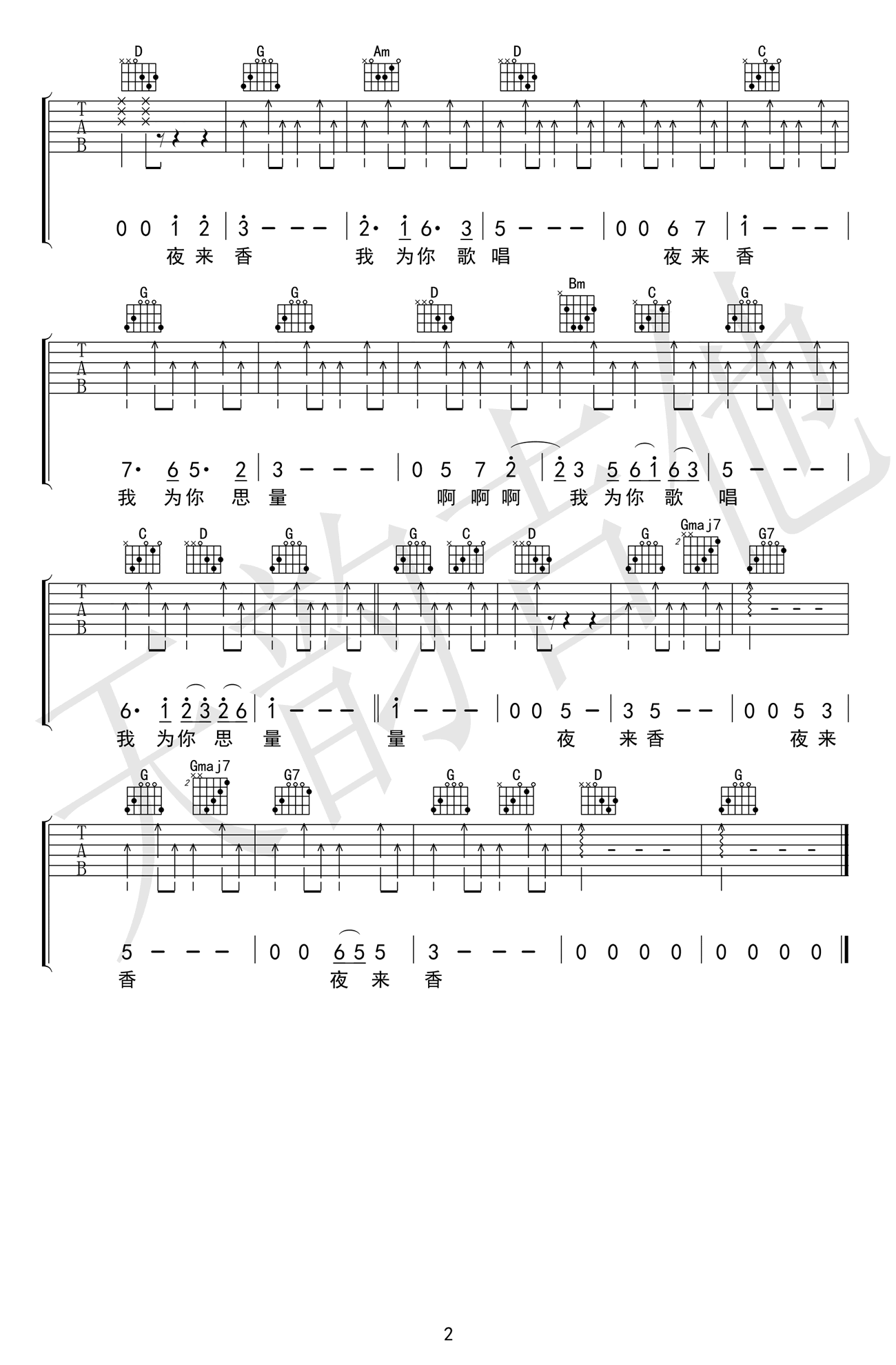 夜来香吉他谱 - 邓丽君 - G调吉他弹唱谱