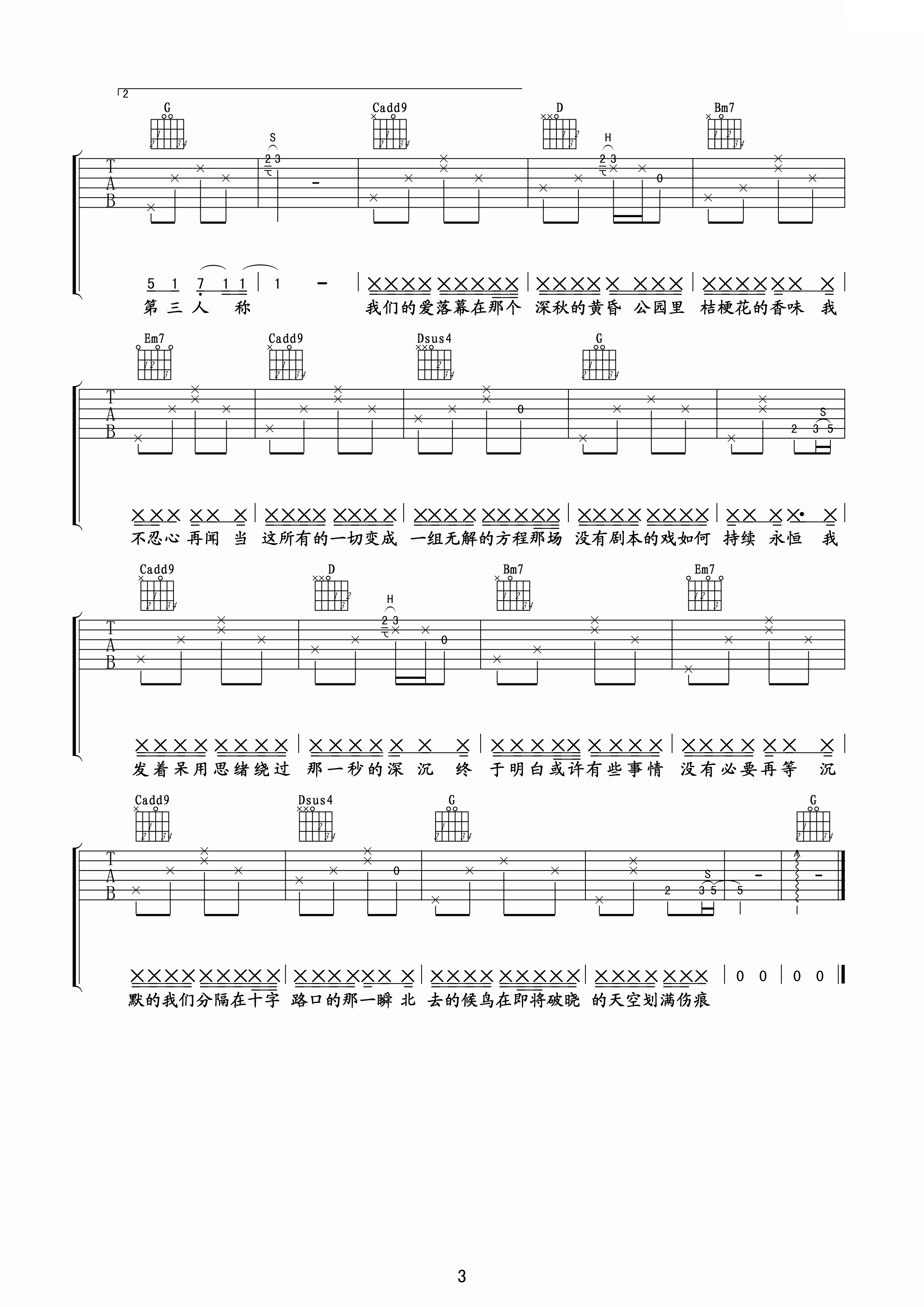 七号公园吉他谱 - 许嵩 - G调吉他弹唱谱 - 原版