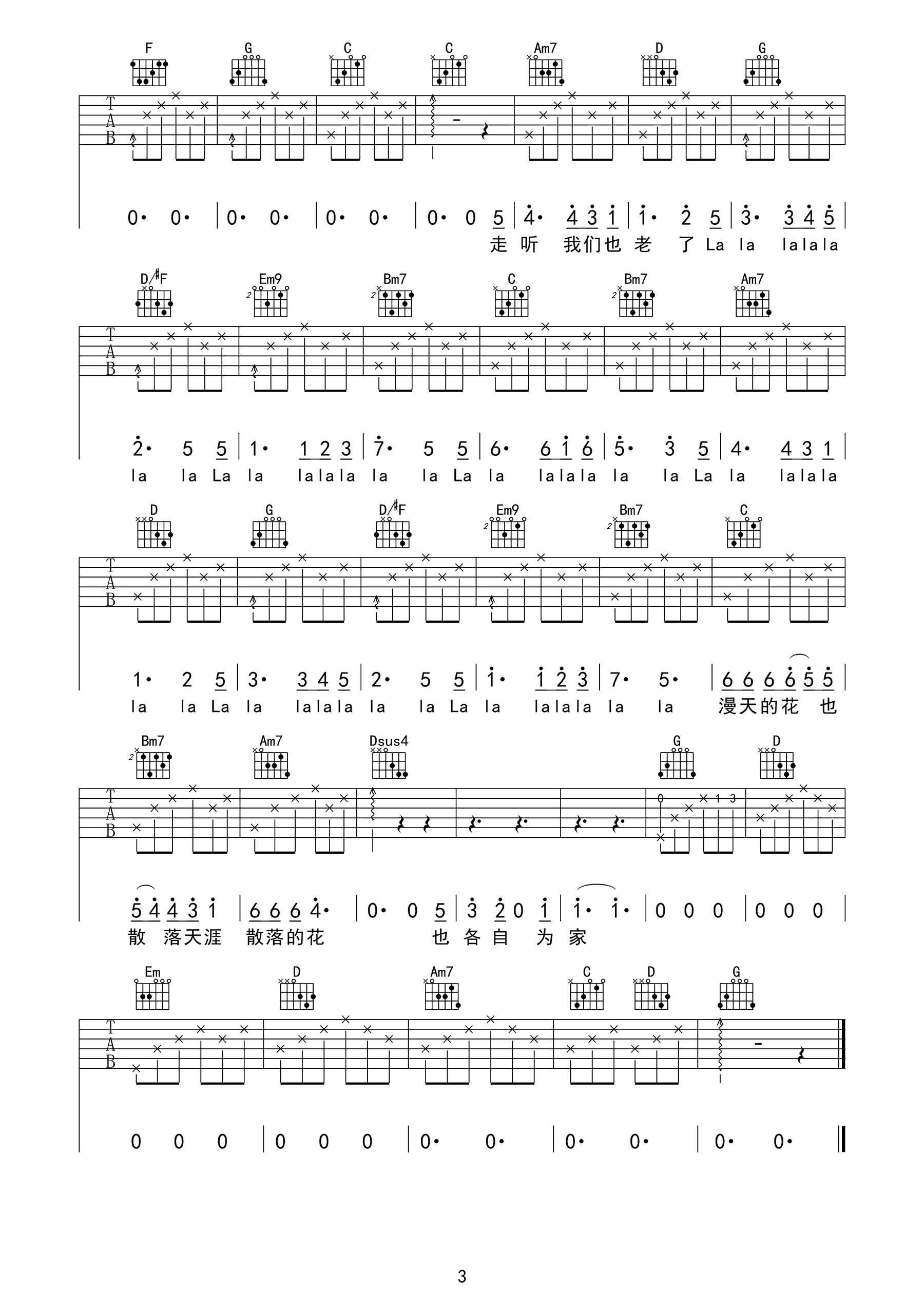 当前位置:琴谱网>吉他弹唱>花落知多少