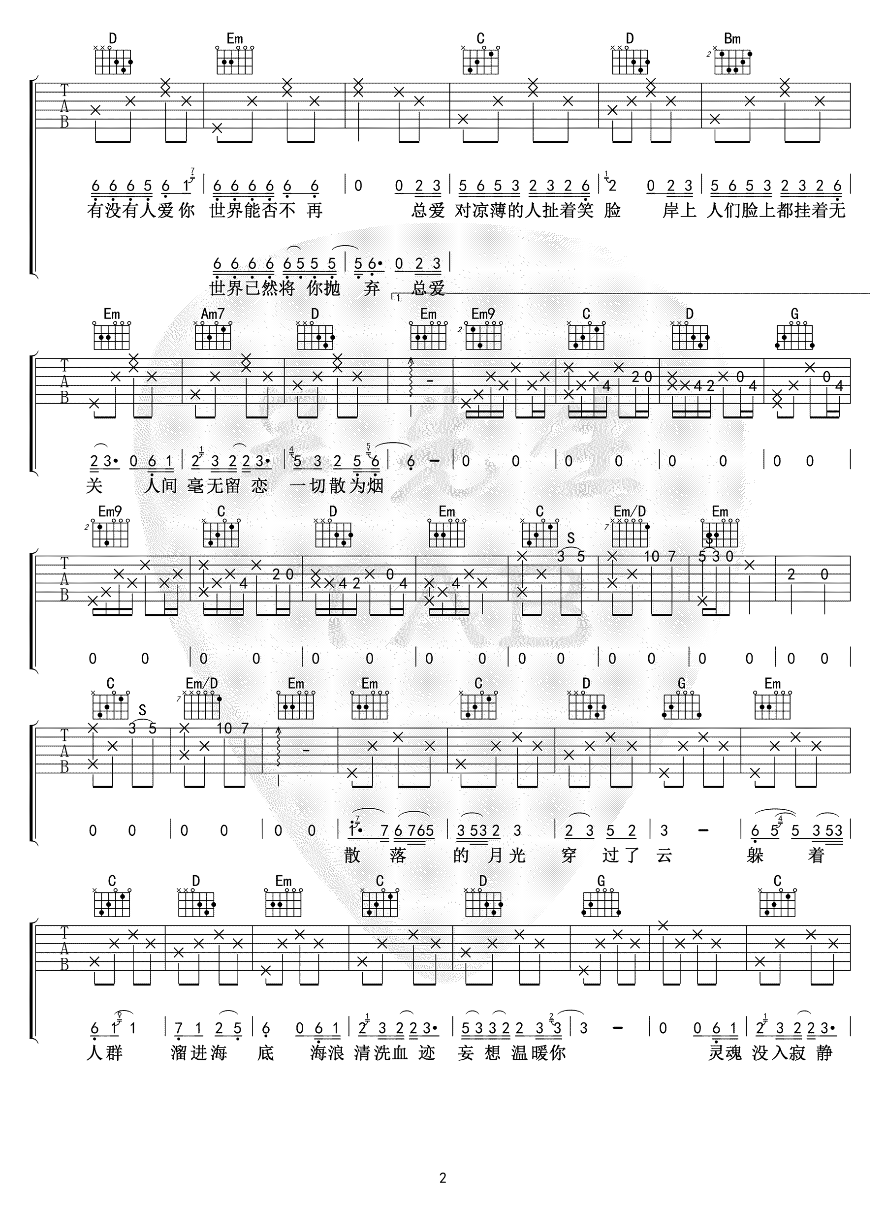 曲谱介绍: 海底吉他谱_一只榴莲_《海底》G调原版弹唱谱_高清六线谱分享,《海底》一只榴莲演唱的一首歌。