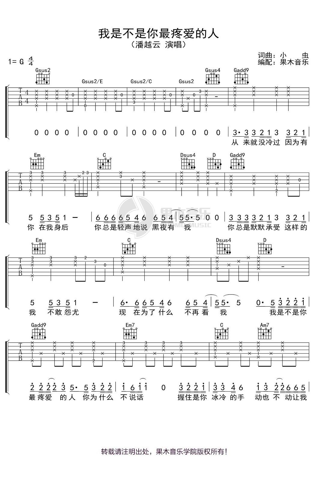 我是不是你最疼爱的人吉他谱 - 李代沫/潘越云 - G调吉他弹唱谱 - 原版