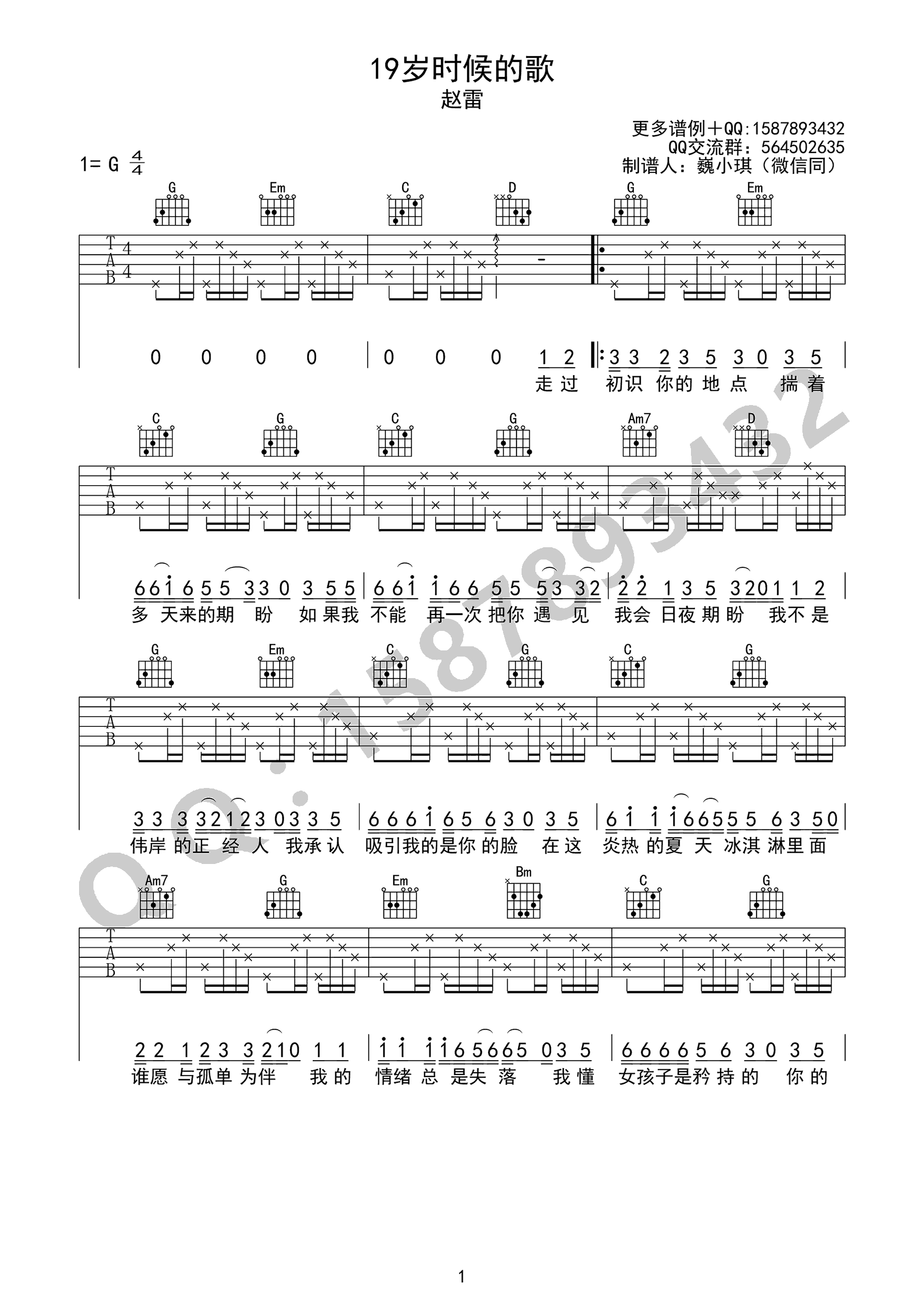 当前位置:琴谱网>吉他弹唱>19岁时候的歌