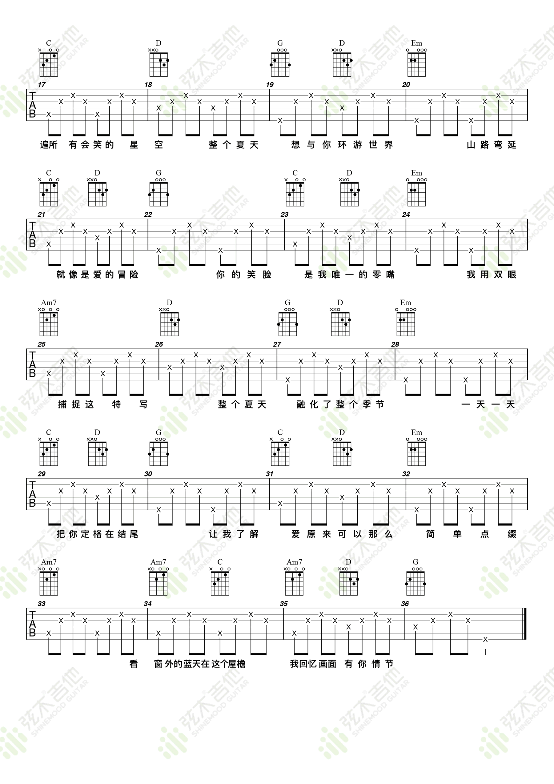 当前位置:琴谱网>吉他弹唱>夏天