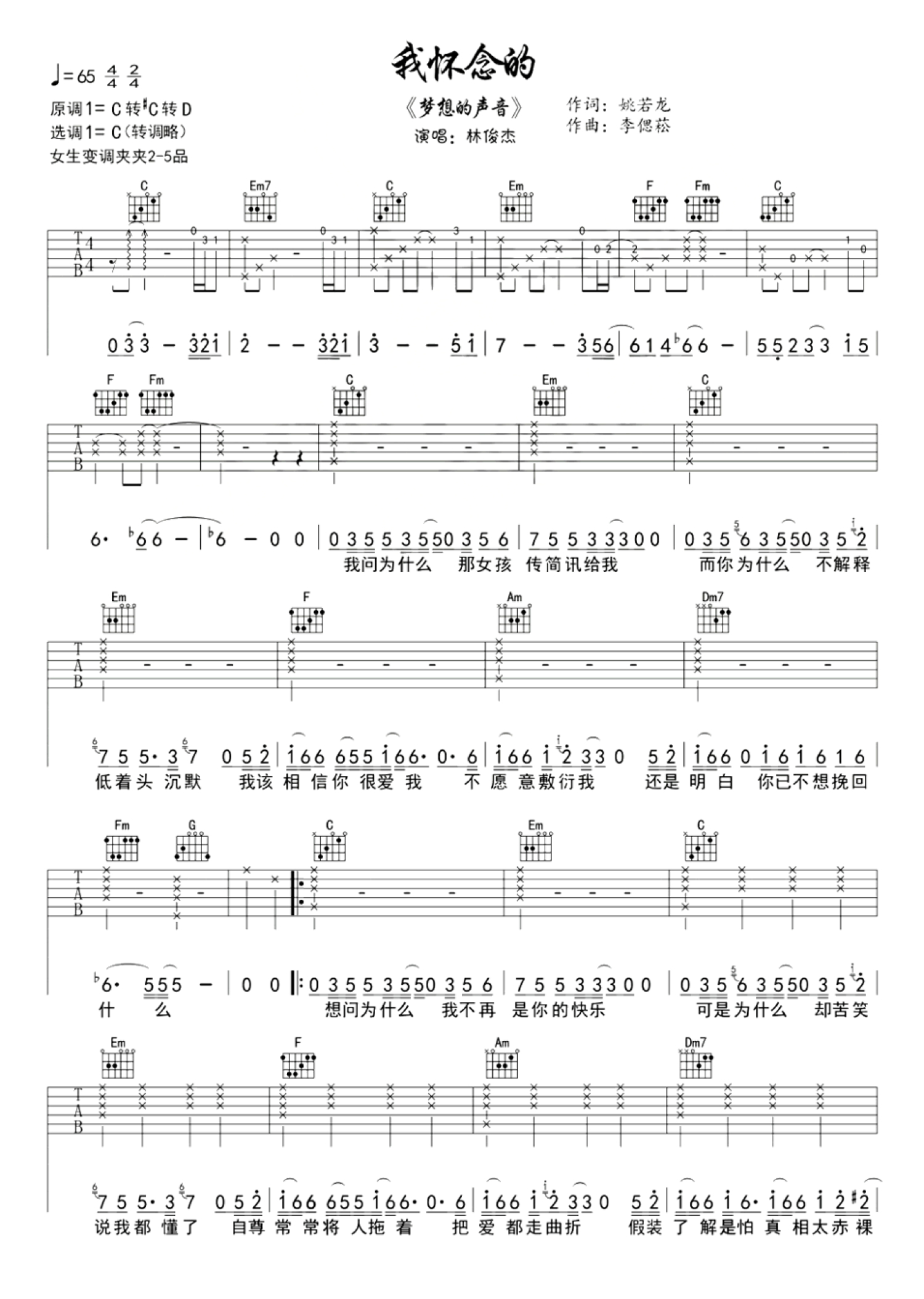 吉他弹唱C调来源:八戒乐器53277 浏览2018-03-19 13:34发布图谱共3页