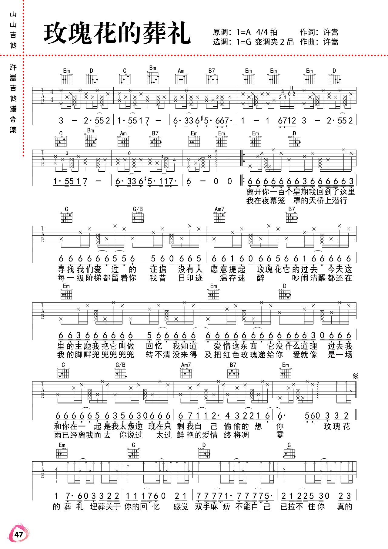 玫瑰花的葬礼吉他谱 - 许嵩 - G调吉他弹唱谱
