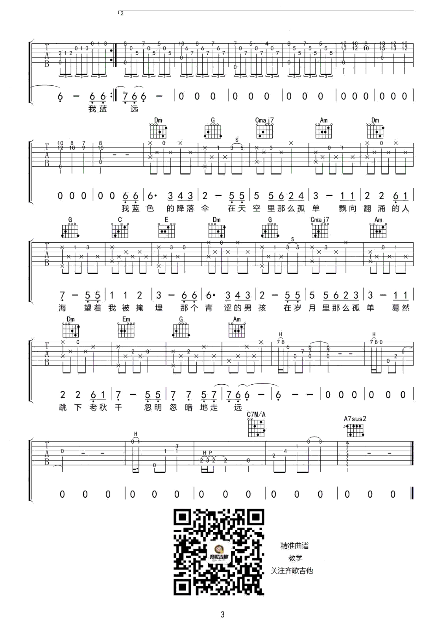 当前位置:琴谱网>吉他弹唱>蓝色降落伞