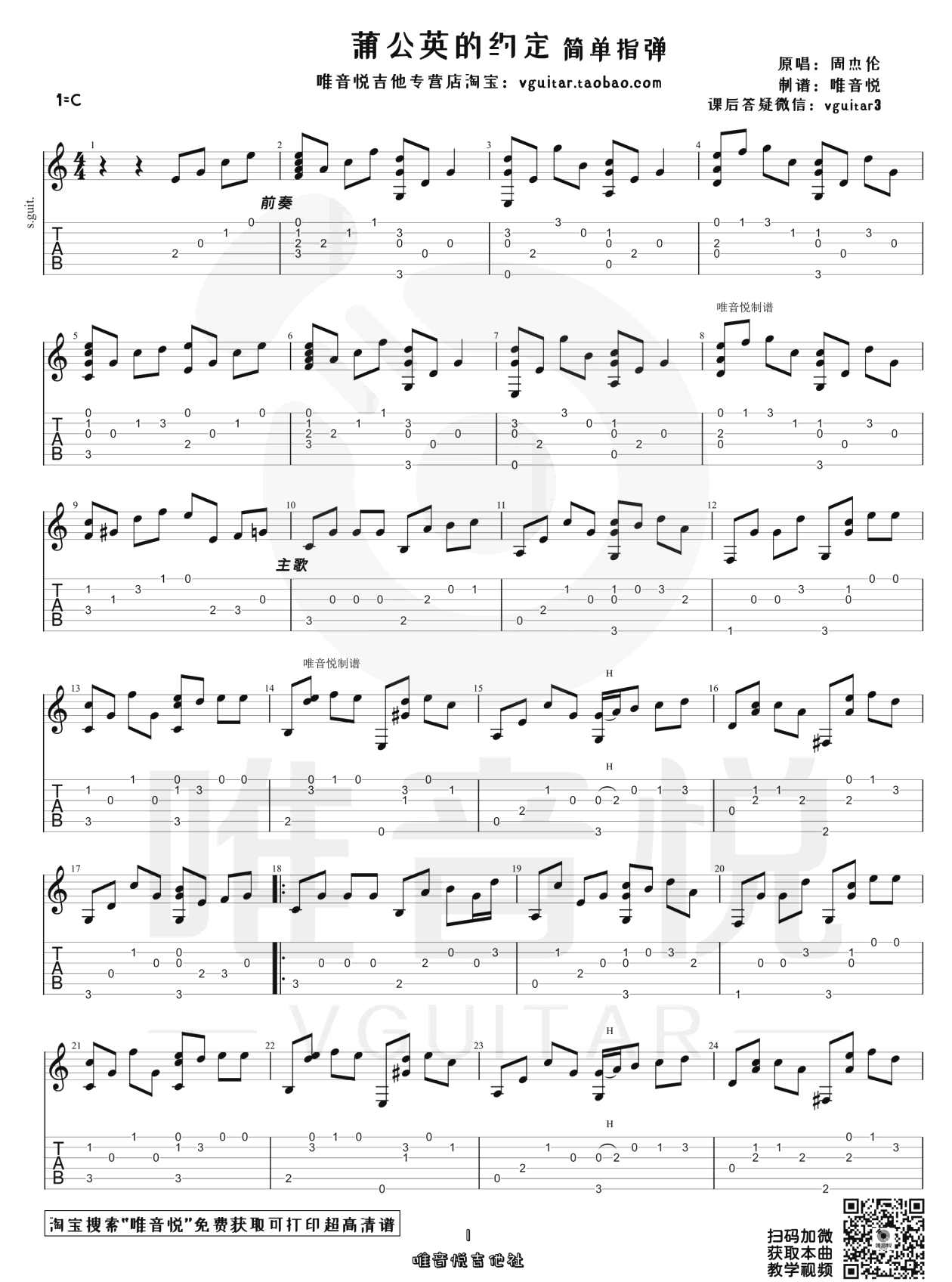 曲谱介绍: 蒲公英的约定指弹吉他谱,周杰伦经典代表歌曲改编,唯美感人的旋律,致纯真初恋。蒲公英的约定吉他独奏谱,C调超级简单版编配,三张图片谱例。一曲情歌经典,总让我们回忆起青春懵懂纯真的时光,以及那情窦初开的感情,唯美感人的旋律中,仿佛乘着时光机,回到了从前,回到了那片长满蒲公英的青青草地和校园。