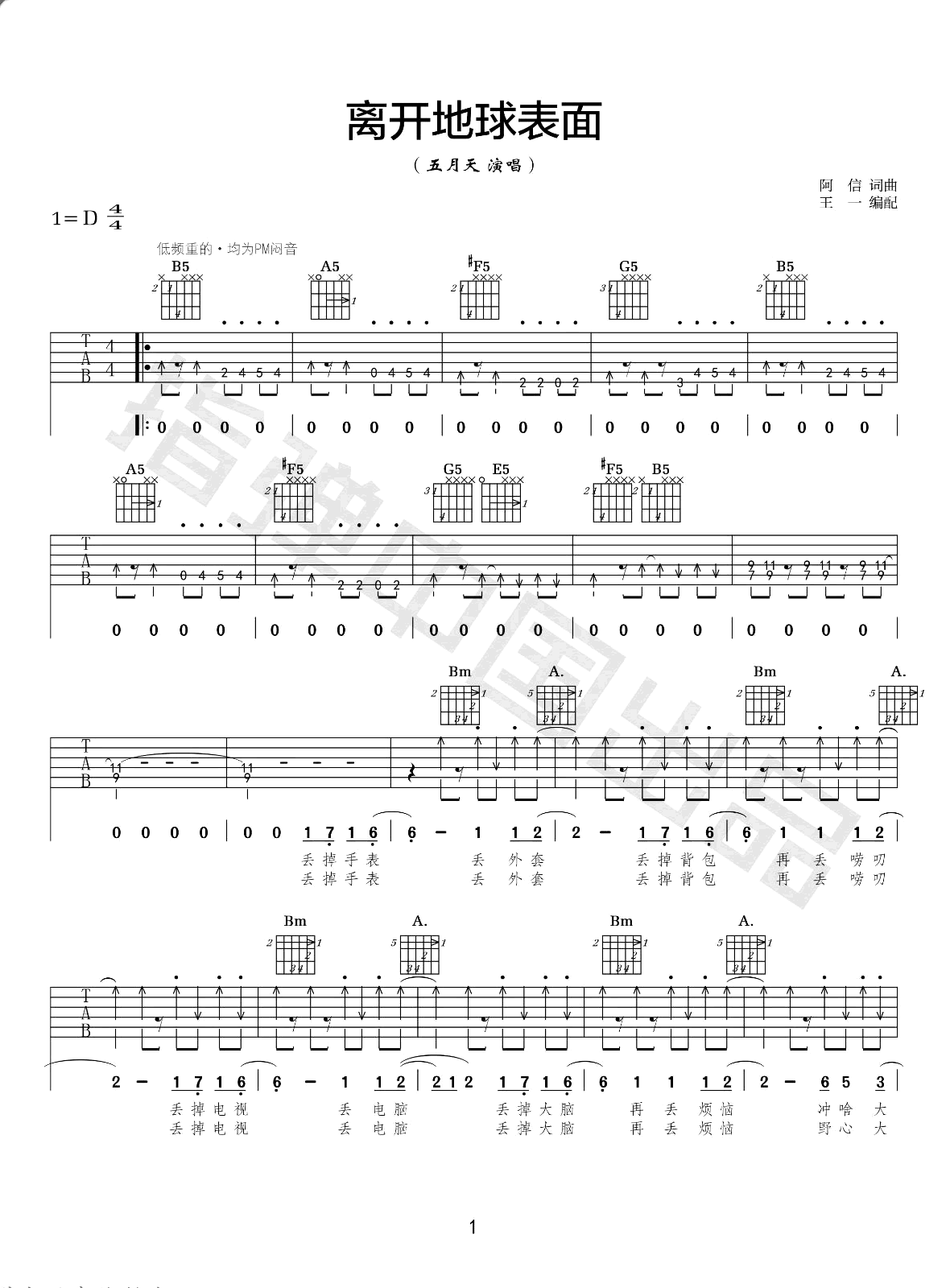 离开地球表面吉他谱 - 五月天 - D调吉他弹唱谱
