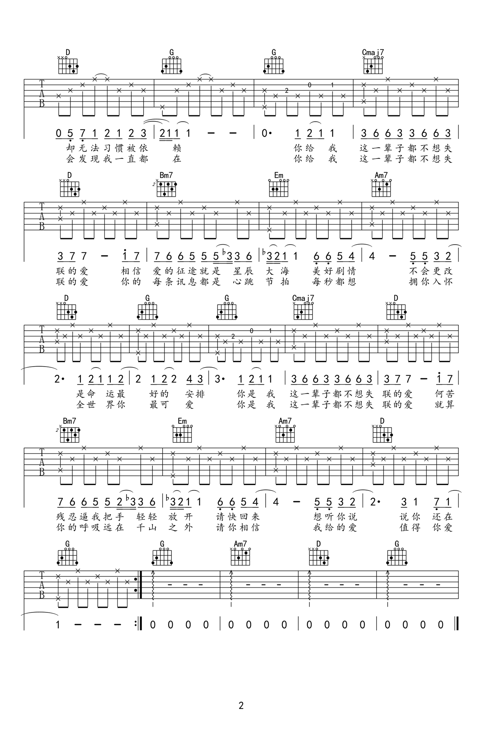 永不失联的爱吉他谱 - G调吉他弹唱谱