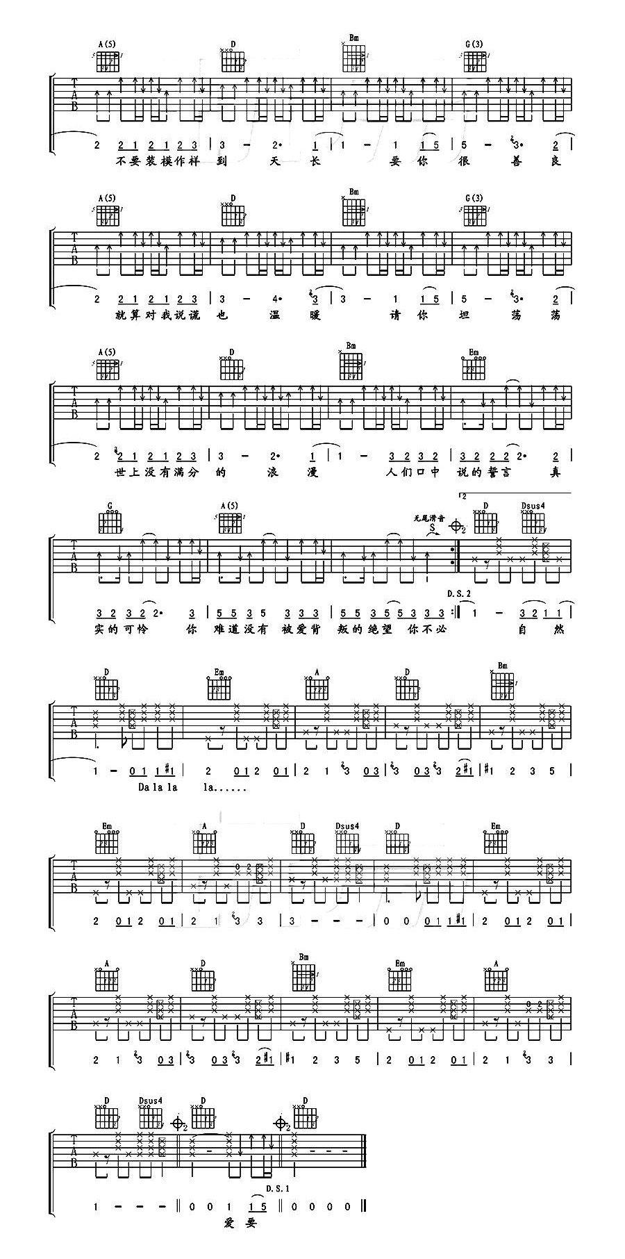 爱要坦荡荡吉他谱 - 萧潇 - D调吉他弹唱谱 - 原版