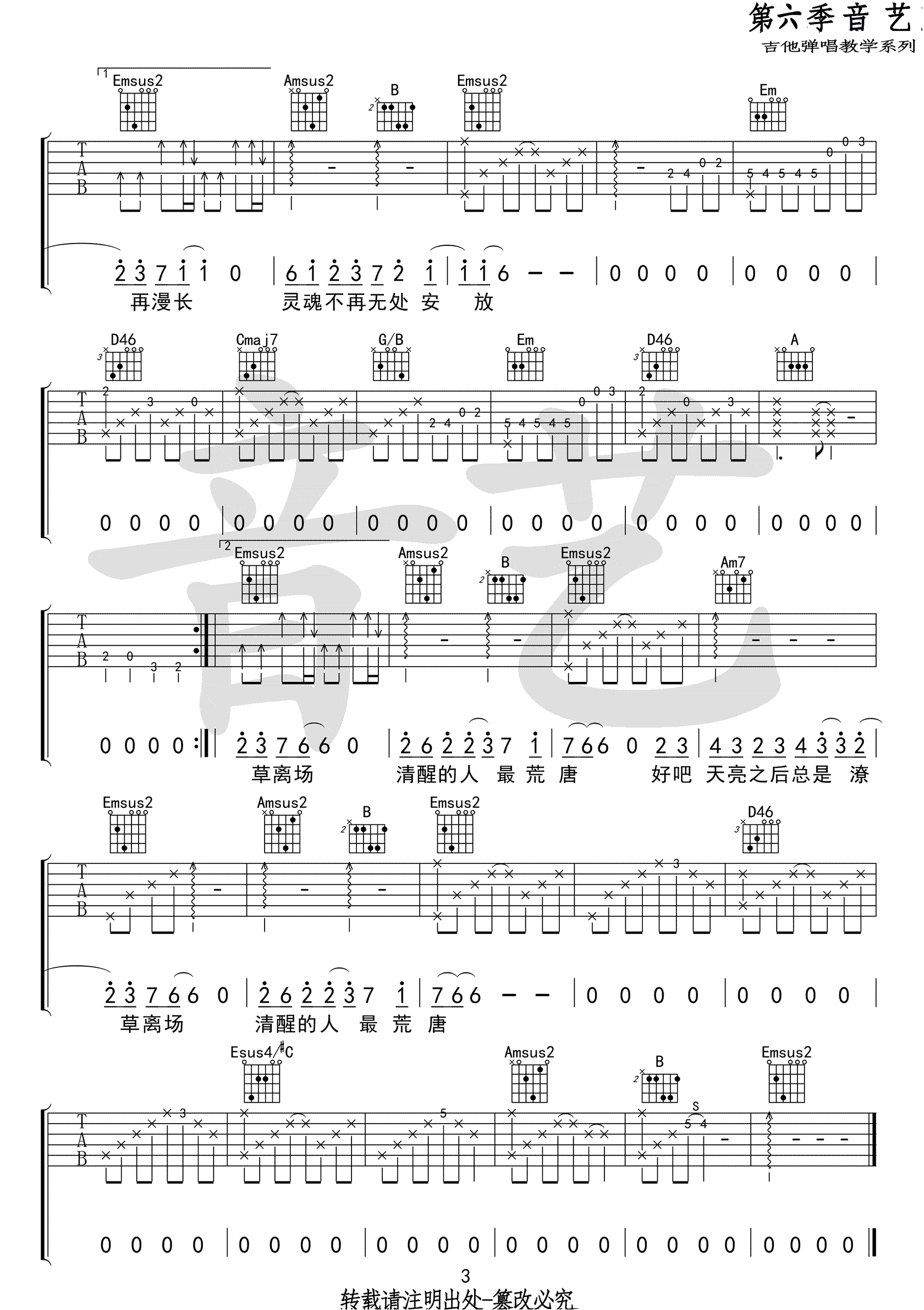 曲谱介绍: 消愁吉他谱_毛不易_《消愁》G调弹唱谱_消愁高清六线谱分享,《消愁》这首歌由毛不易创作并演唱,毛不易用“故乡”“远方”“善良”“成长”等等意象的建构,让那些正在生活中奋力打拼但有时也会感到力不从心的年轻人们,找到了情感的共鸣。 此版本的曲谱来源于音艺吉他扒谱制谱,这首歌曲的和声调式编配的真心不错,大小调的转换很到位,和弦外音也有特点,所以就尽量按原版来编配的,不过来也不算难,弹不了的小伙伴可以把和弦简化,比如Emsus2就用Em。 消愁吉他谱_毛不易_《消愁》G调弹唱谱_消愁高清六线谱1: