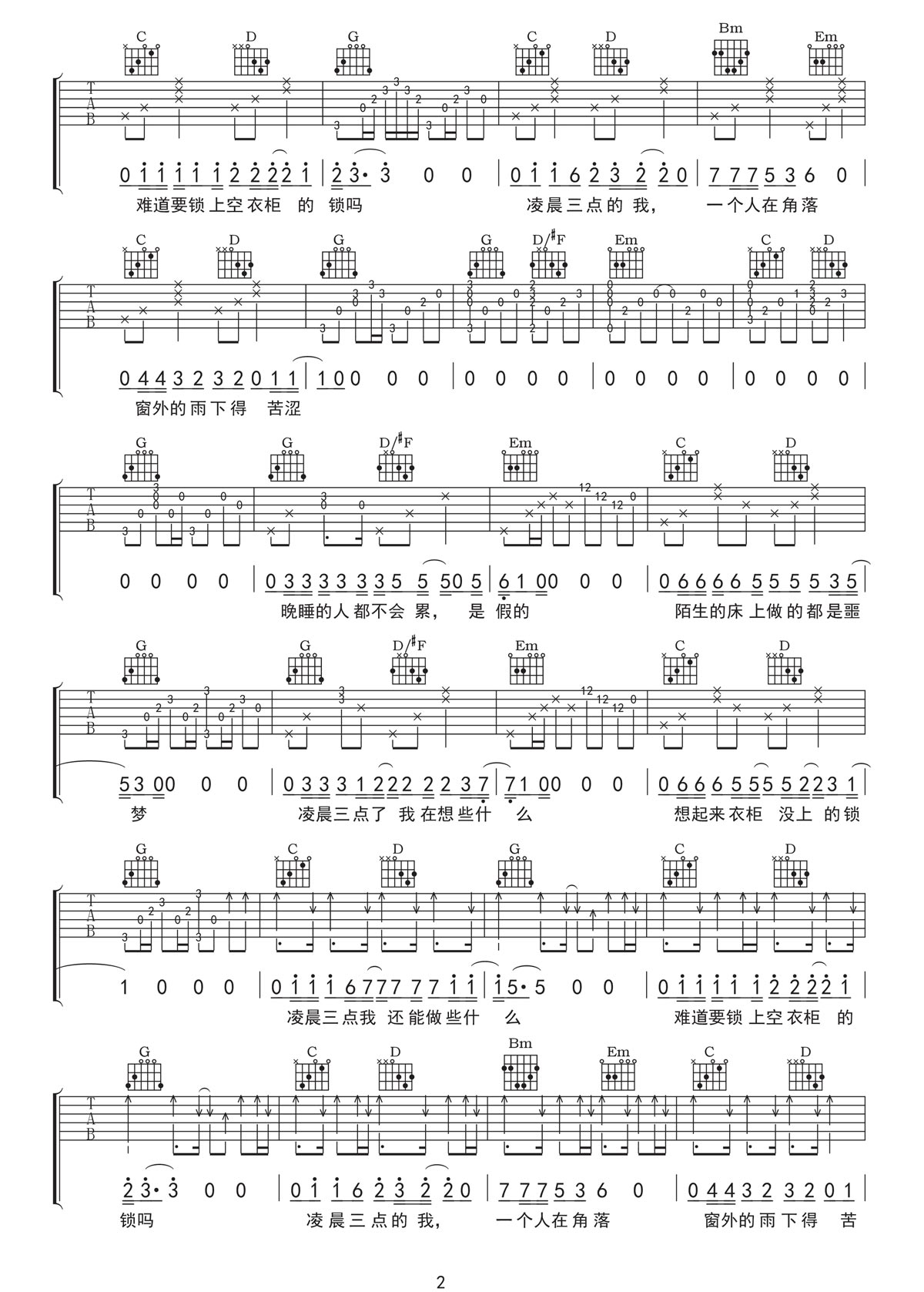 凌晨三点吉他谱 - HHW - G调吉他弹唱谱 - 原版