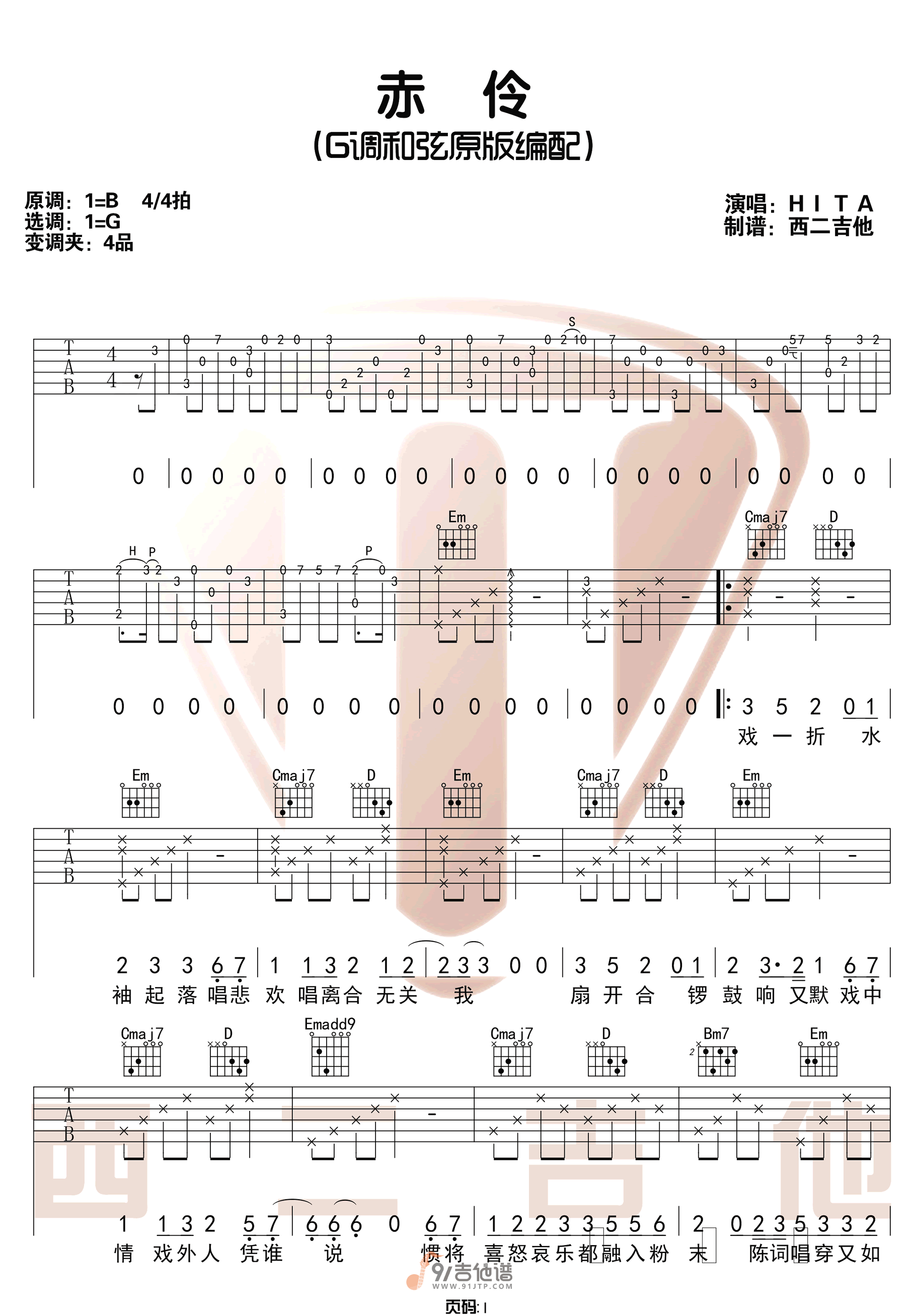 赤伶吉他谱 - HITA - G调吉他弹唱谱 - 原版