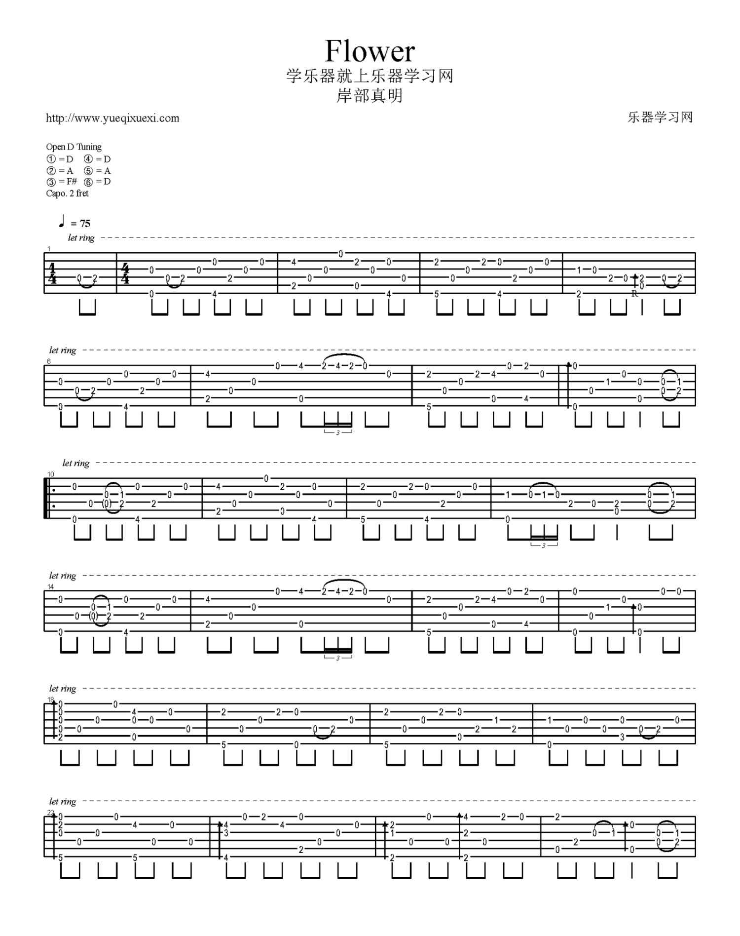 flower吉他谱 - 岸部真明 - 吉他独奏谱