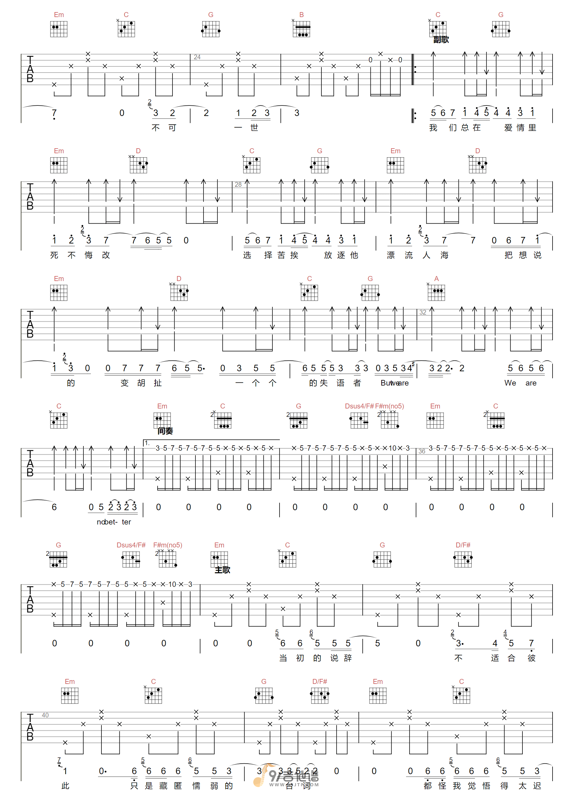 当前位置:琴谱网>吉他弹唱>失语者