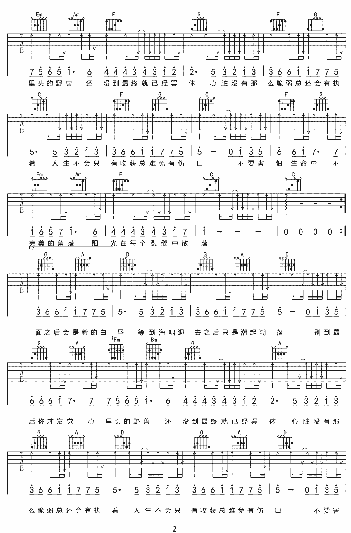 曲谱介绍: 《裂缝中的阳光》吉他谱_林俊杰_C调原版弹唱谱_高清六线谱分享,《裂缝中的阳光》是由吴青峰填词,林俊杰作曲并演唱的一首歌,这是一首给人力量的歌曲。人生不完美,但值得我们创造完美,心中有梦就应该冲破黑暗淹没的世界,阳光才能照进来。 此版本的曲谱来源于网络搜集,版权归原作者所有。这里歌曲采用C调指法根据原版进行编配,演唱时可根据自己的嗓音情况调整变调夹。这首歌练习起来有一定难度,前奏含有较多技巧,后面还有一个转调的部分。 《裂缝中的阳光》吉他谱_林俊杰_C调原版弹唱谱_高清六线谱1:
