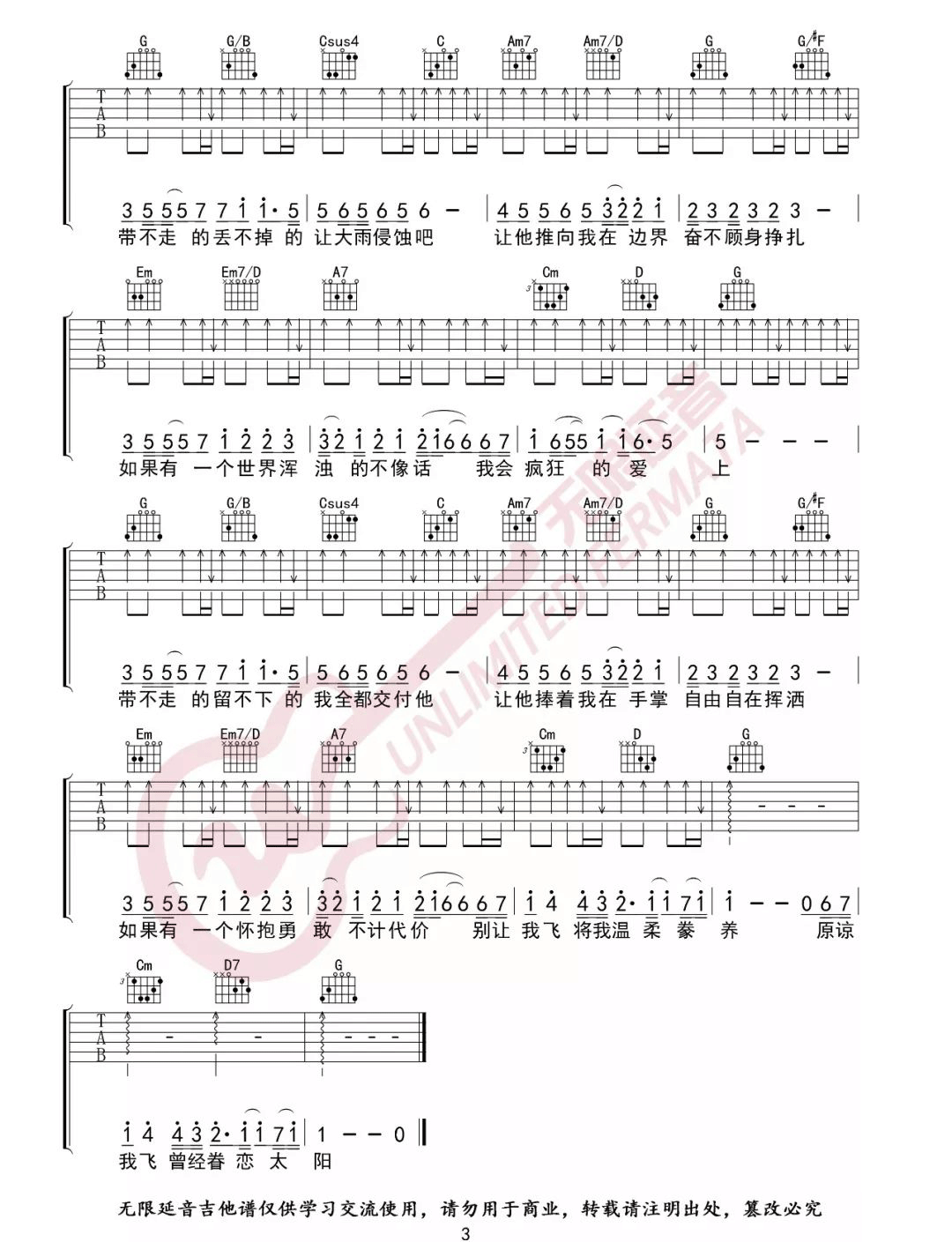 曲谱介绍: 鱼吉他谱_陈绮贞_《鱼》G调原版弹唱六线谱_高清图片谱分享,《鱼》是由陈绮贞作词作曲并演唱的一首歌,这首歌发行也有些年头了,陈绮贞的声音是笔者非常喜欢的一种,治愈系的声音,单单听到她的声音就能感觉心中的平静。 此版本的曲谱来源于无限延音扒谱制谱,这里歌曲采用G调指法根据原版进行编配,演唱时根据自己的嗓音情况夹变调夹。这首歌原版的吉他伴奏也是非常简单的,前面采用分解和弦,后面并不复杂的扫弦节奏型。 鱼吉他谱_陈绮贞_《鱼》G调原版弹唱六线谱_高清图片谱1: