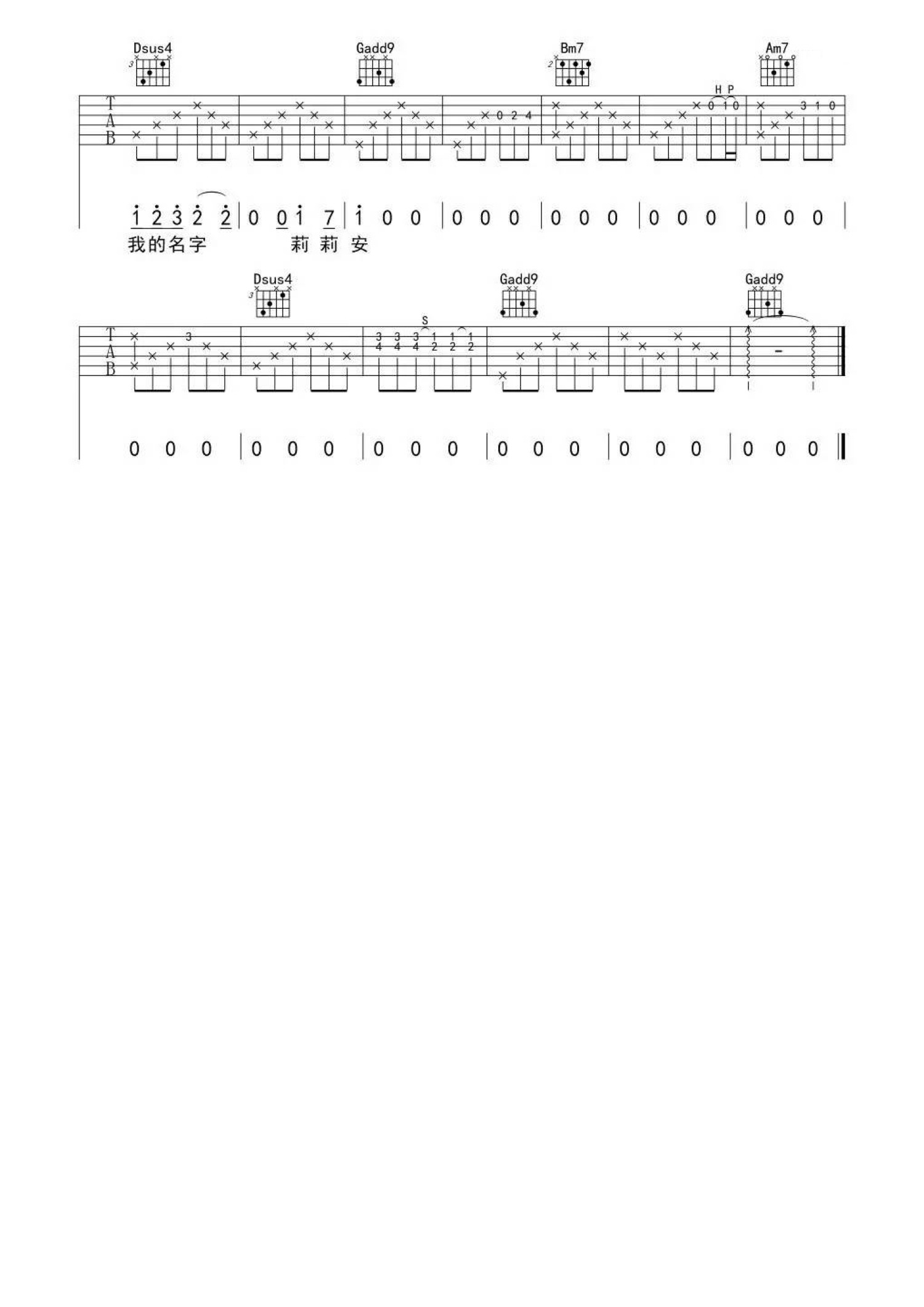 曲谱介绍: 宋冬野 《莉莉安》(吉他谱) G调吉他谱