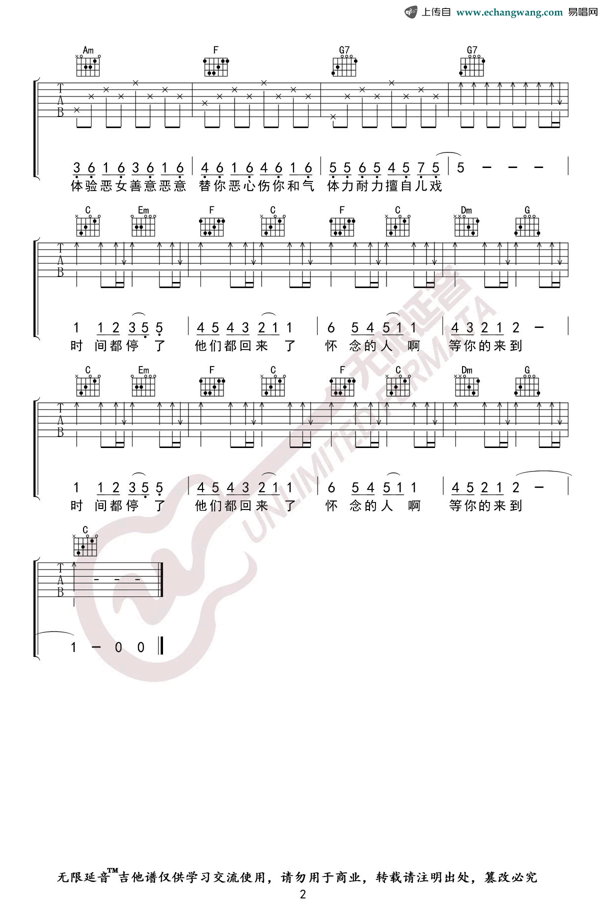 曲谱介绍: 《T1213121》吉他谱,五月天的一首歌曲,如果新手想学吉他,可以先从这首曲子开始,十分适合初学者。T1213121六线谱,C调弹唱,两张图片谱。无限延音编配制谱,91吉他谱上传分享。 一直都超级喜欢这首简单得不能再简单的歌,同一个旋律,四大和弦和一套最常见最基础的指法,简单的民谣吉他,简单的弹唱,简单的和声和歌词。