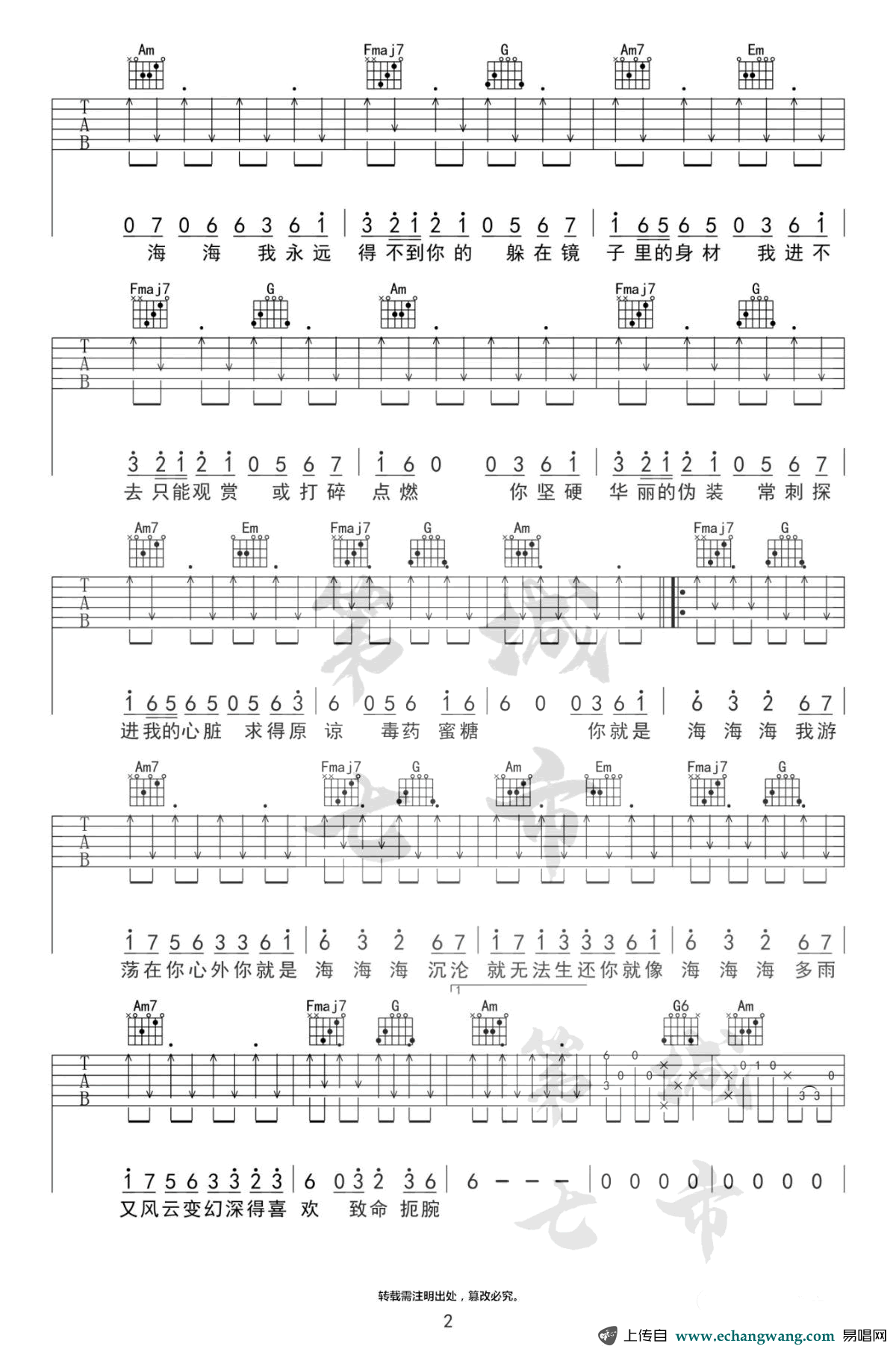 海海海吉他谱 - 阿悄 - 吉他弹唱谱
