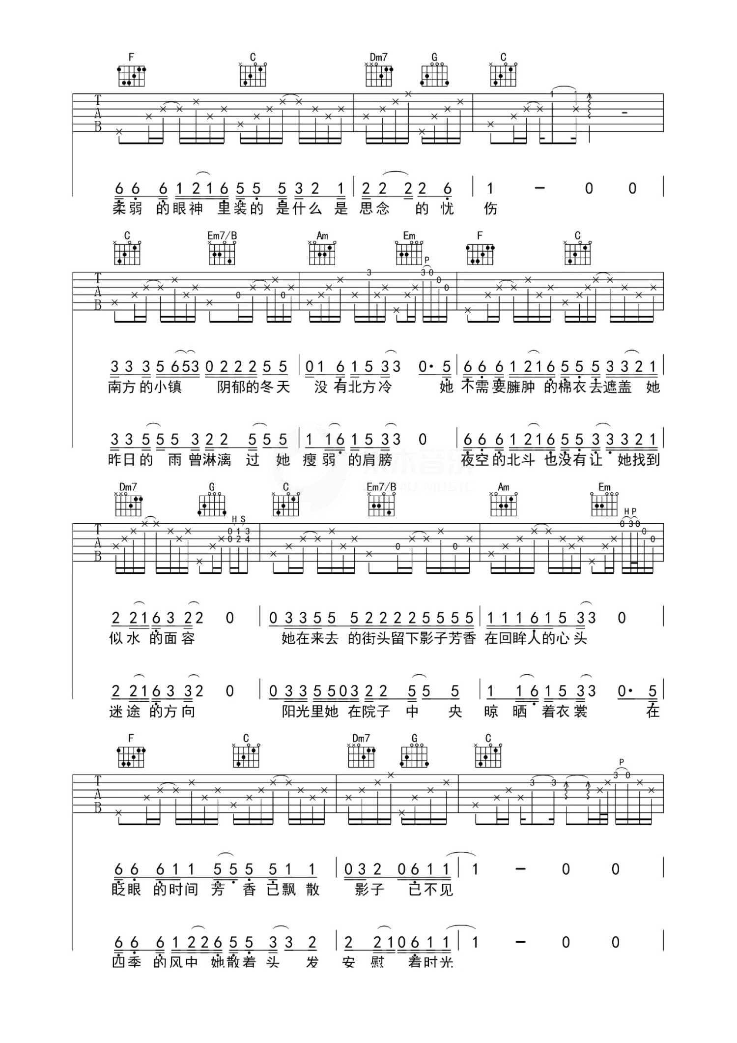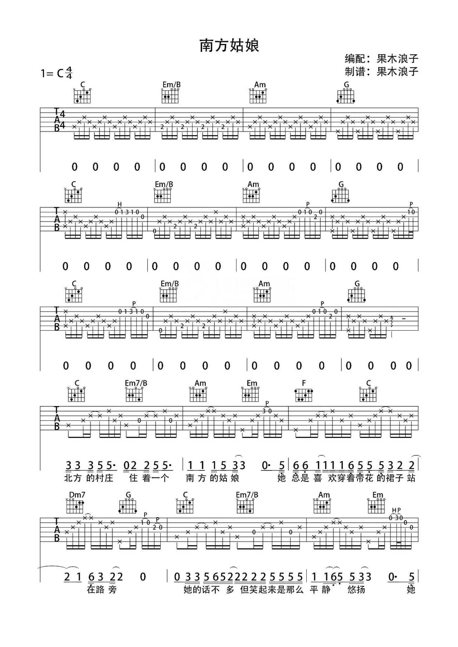 当前位置:琴谱网>吉他弹唱>南方姑娘