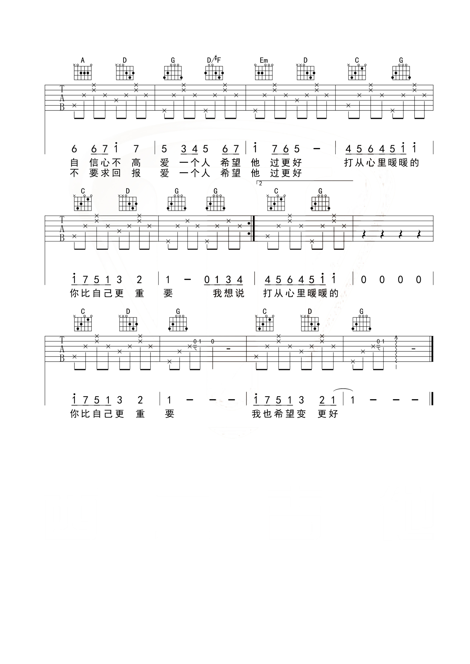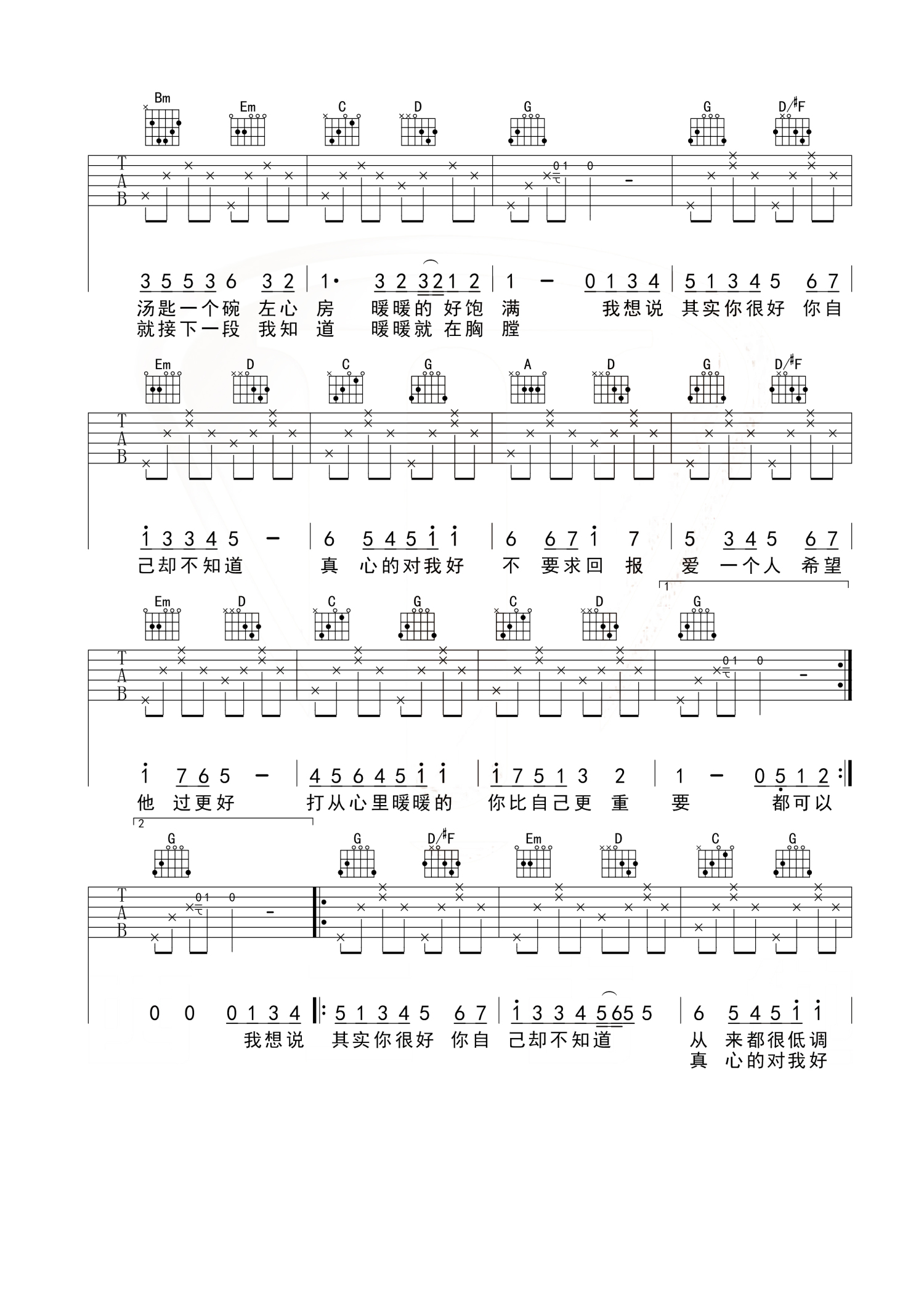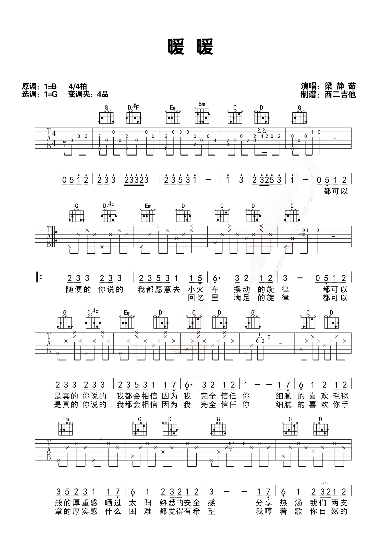曲谱介绍: 梁静茹《暖暖》吉他谱_G调吉他弹唱谱