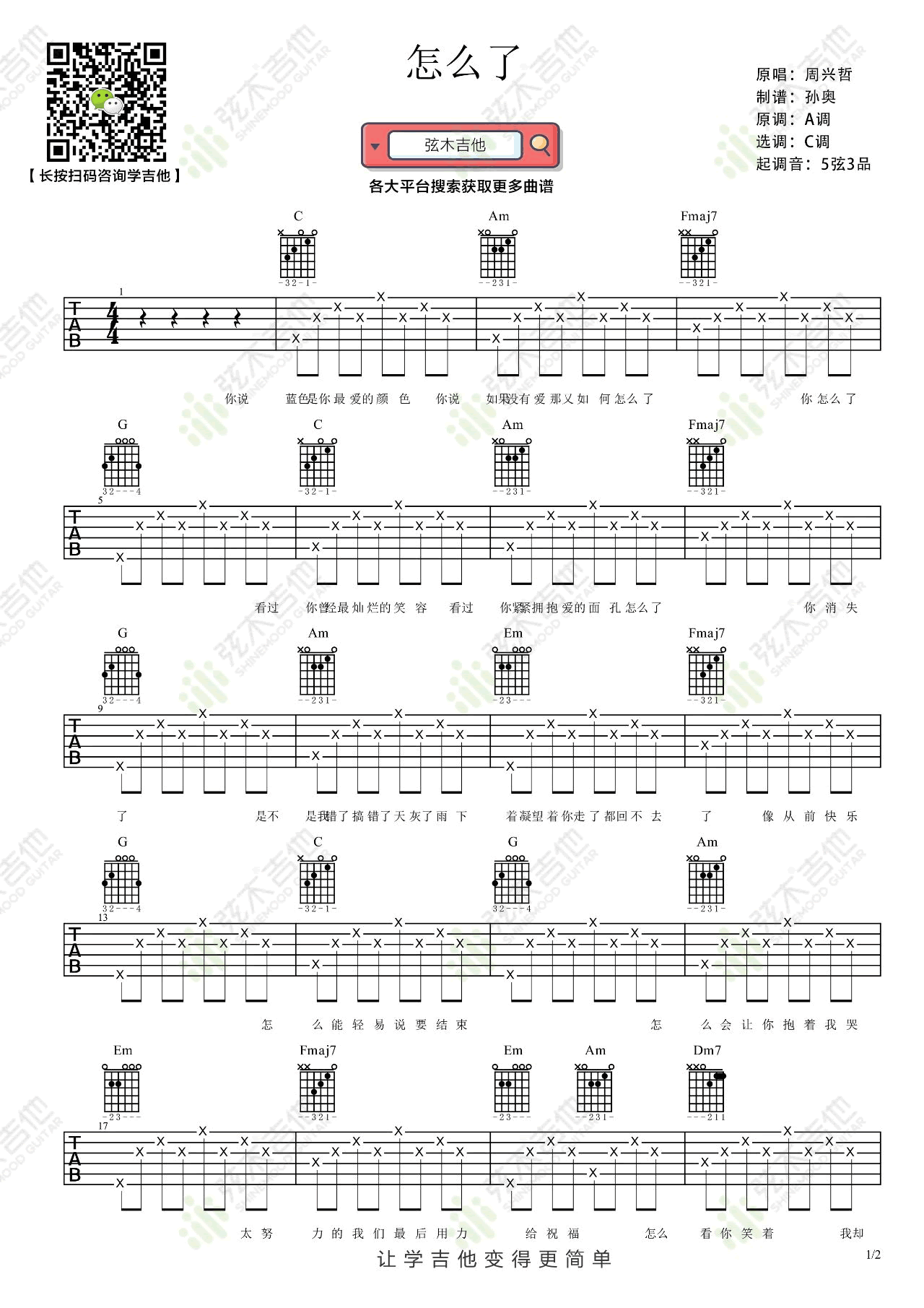 怎么了吉他谱 - 周兴哲 - 吉他弹唱谱