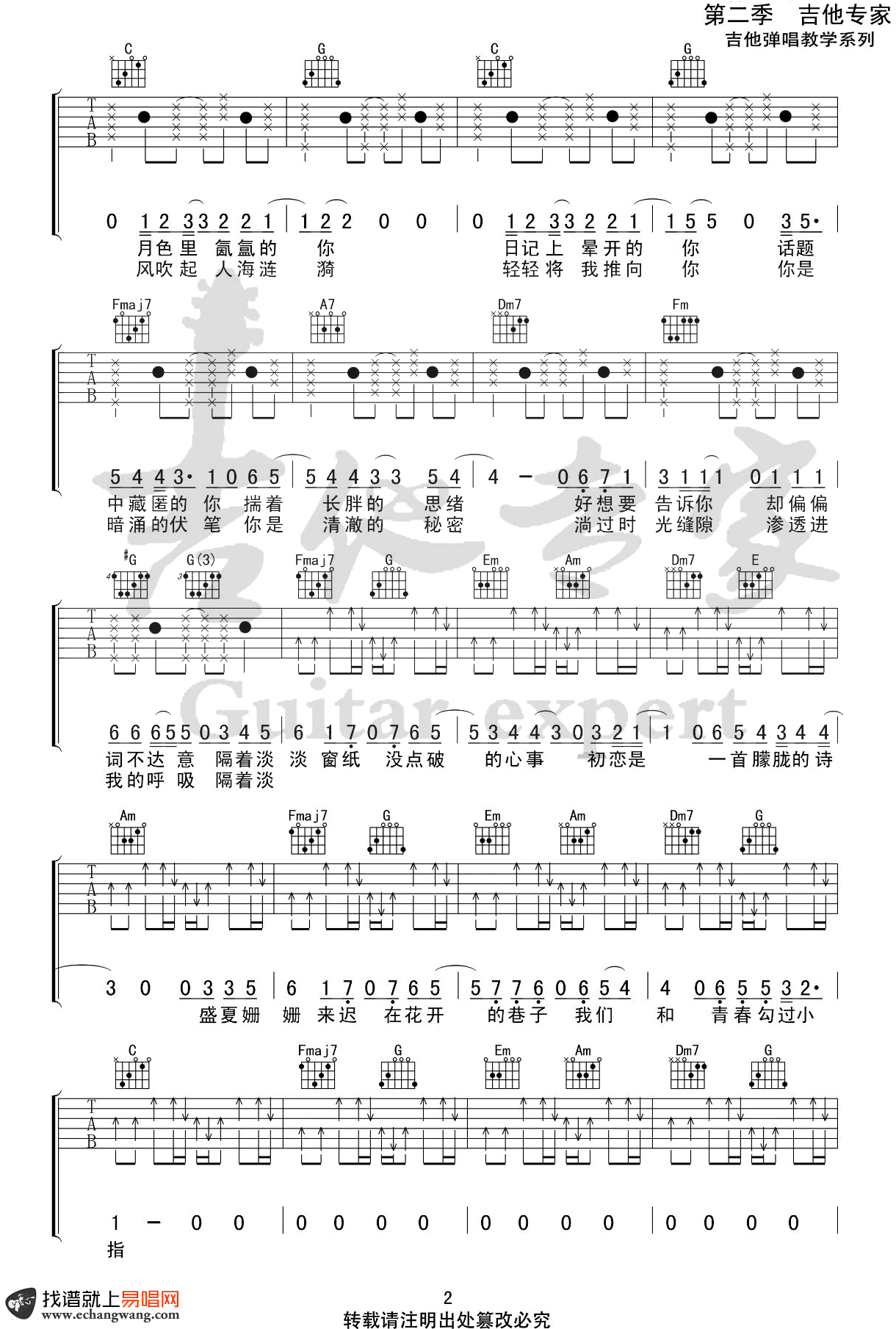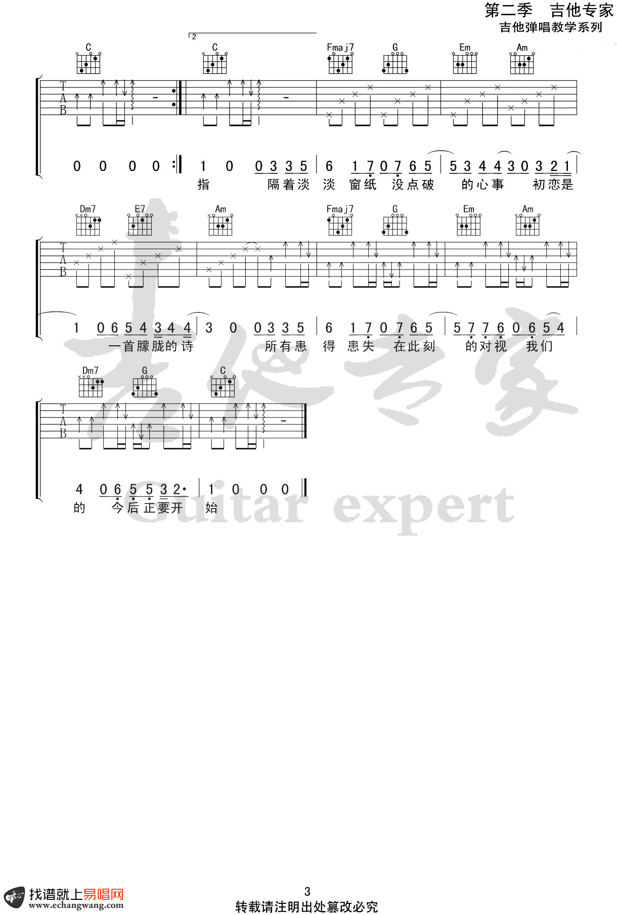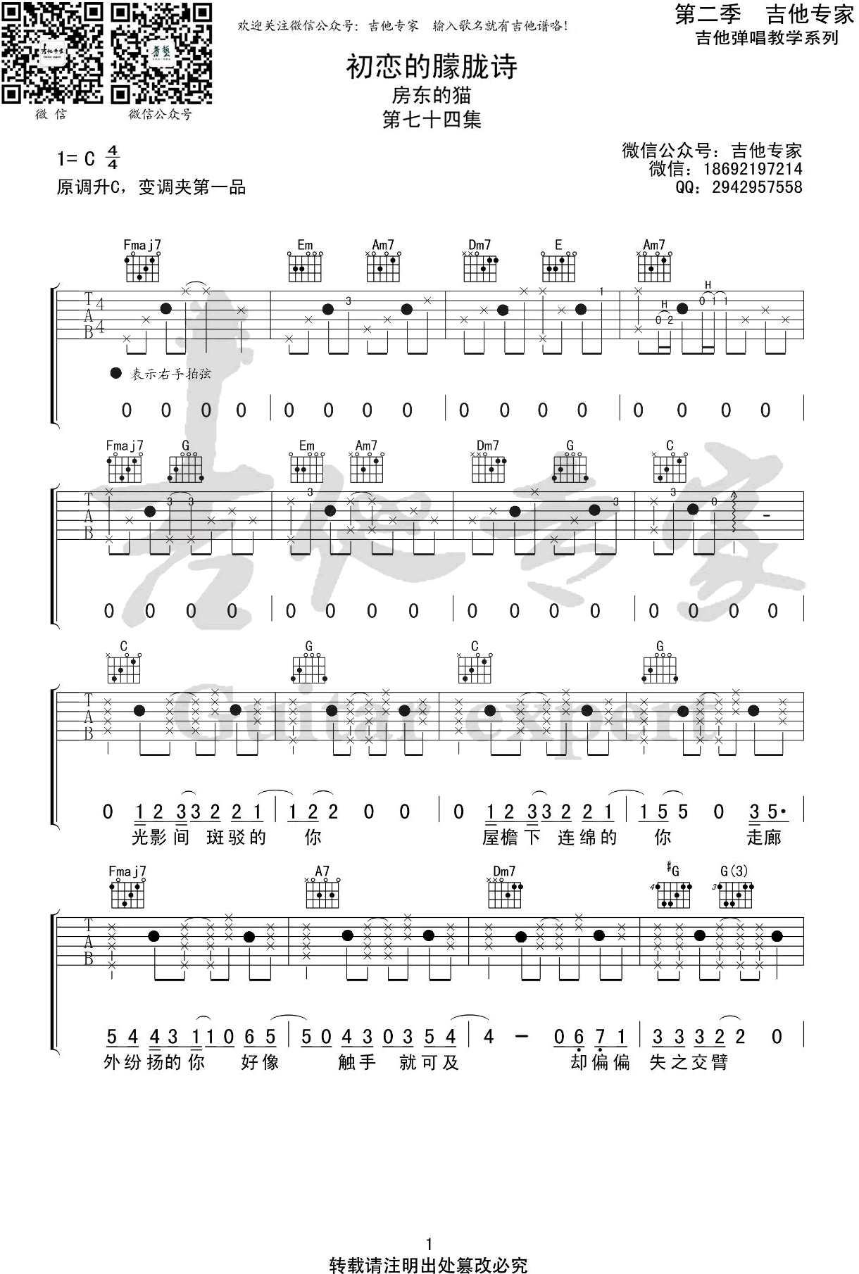 曲谱介绍: 房东的猫《初恋的朦胧诗》吉他弹唱谱,共有3张高清图谱。