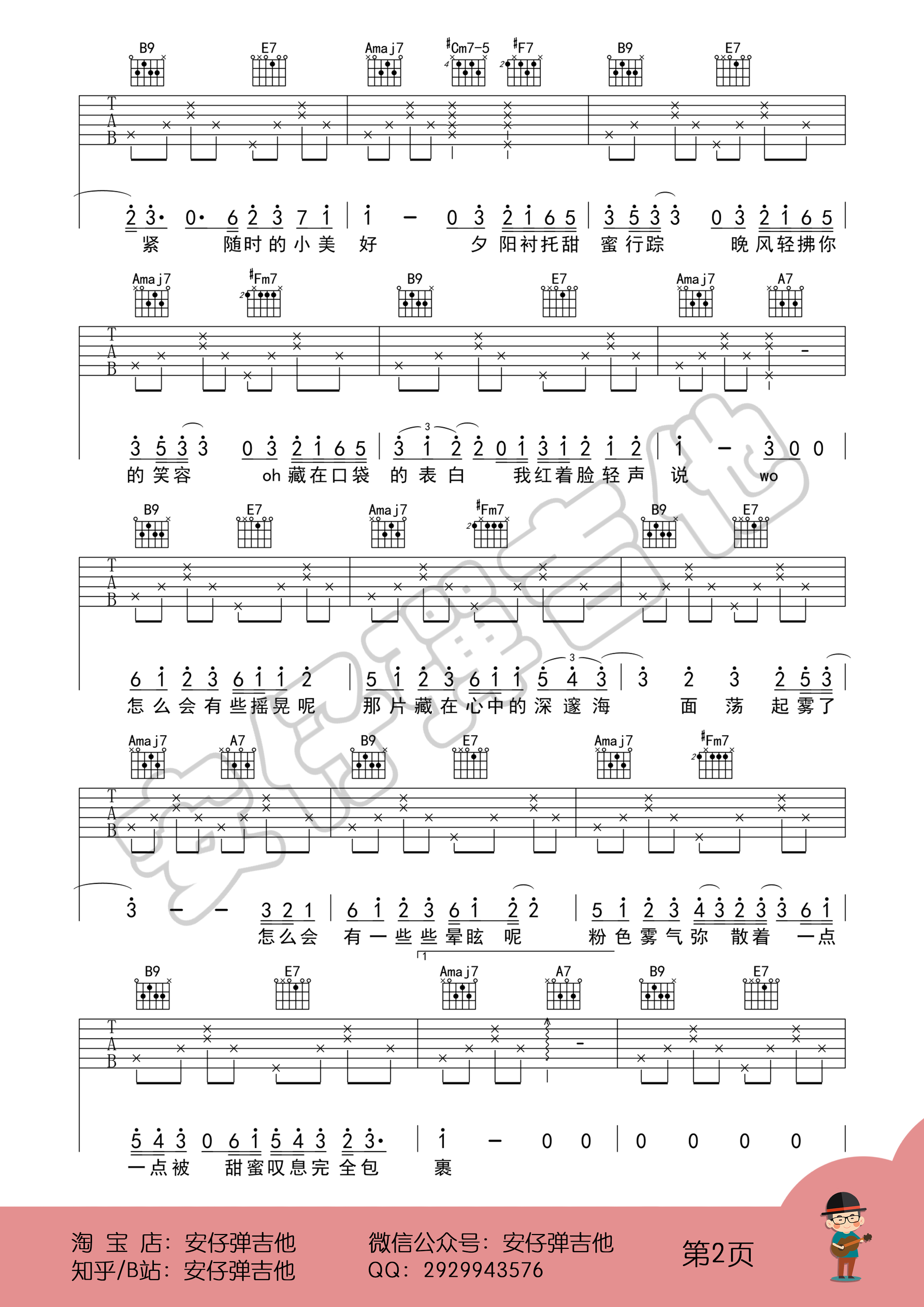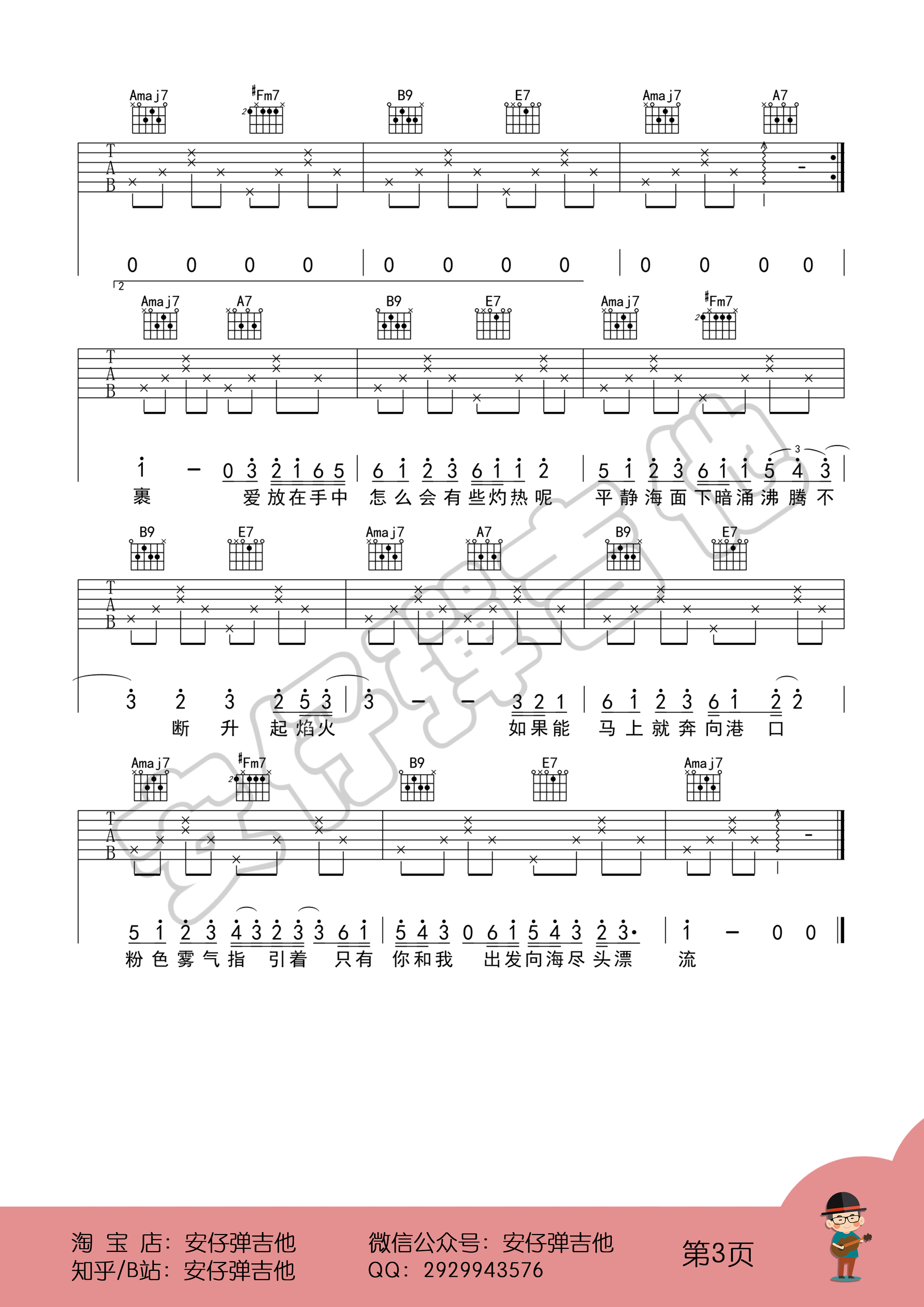 曲谱介绍: 易烊千玺《粉雾海》吉他弹唱谱,共有3张高清图谱。
