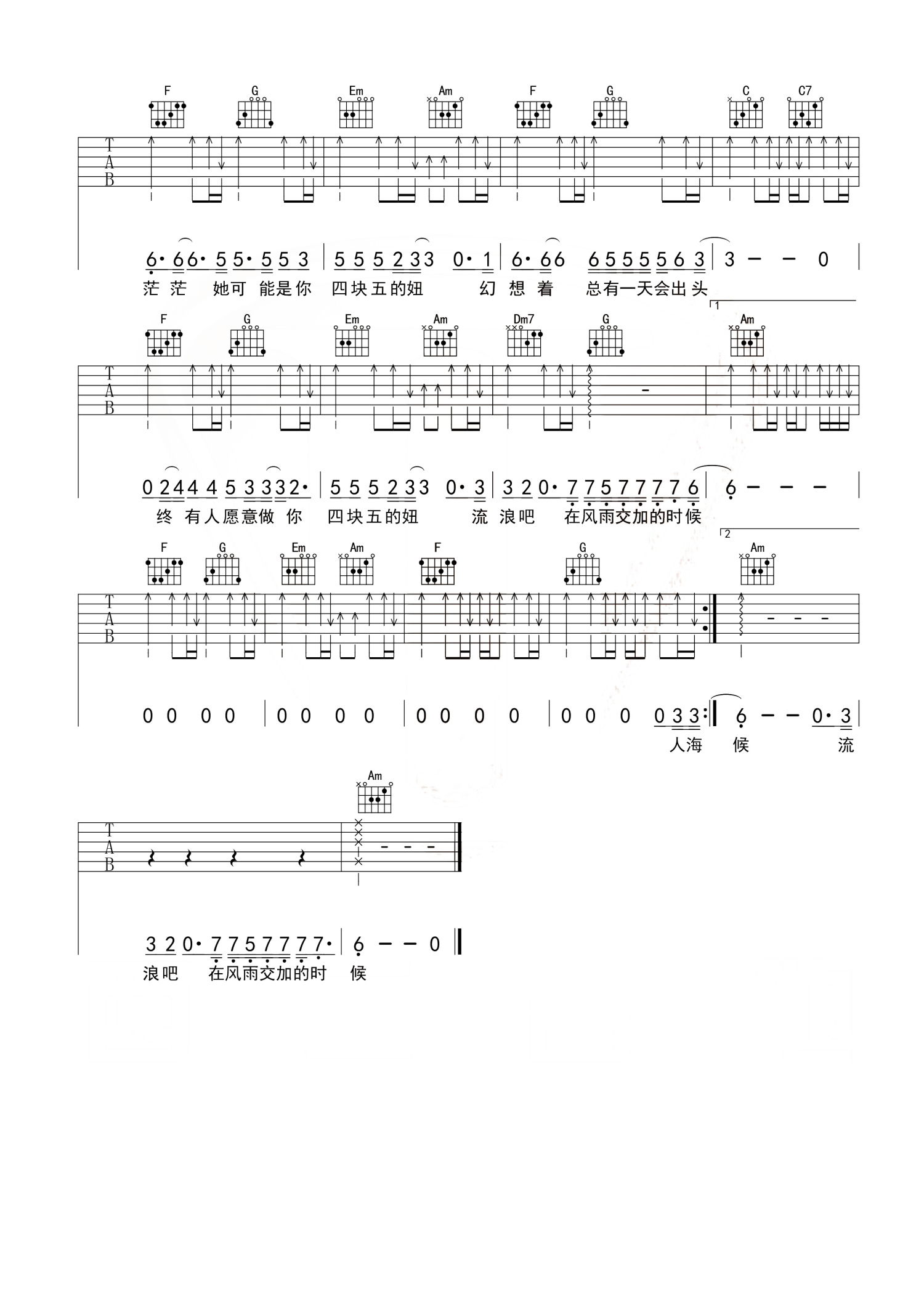 当前位置:琴谱网>吉他弹唱>四块五