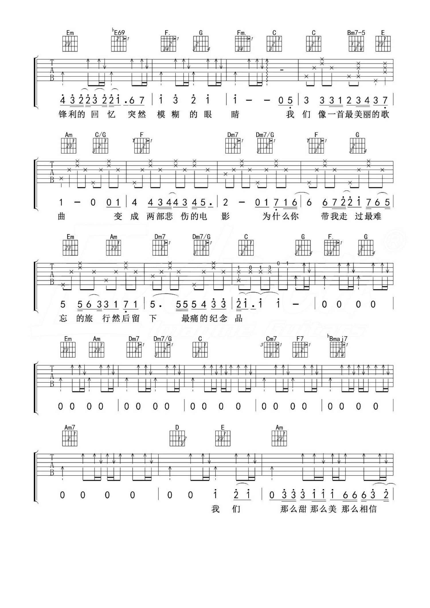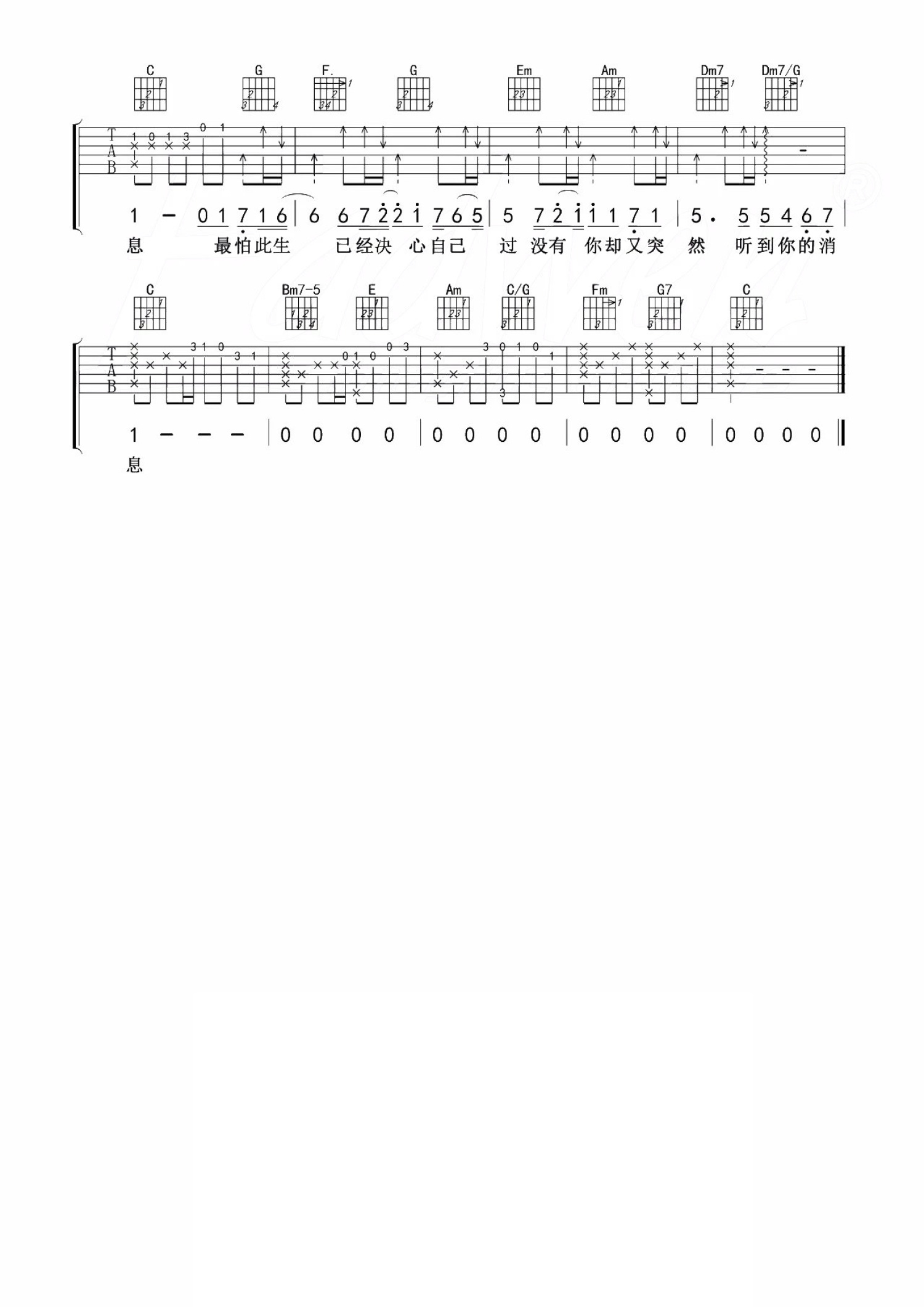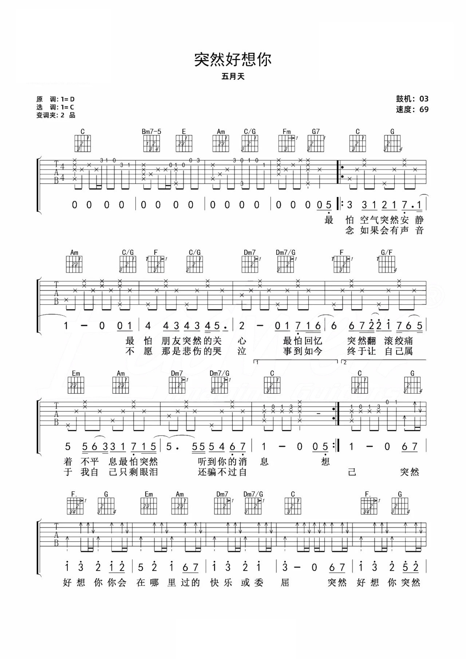 曲谱介绍: 五月天《突然好想你》吉他谱_C调吉他弹唱谱
