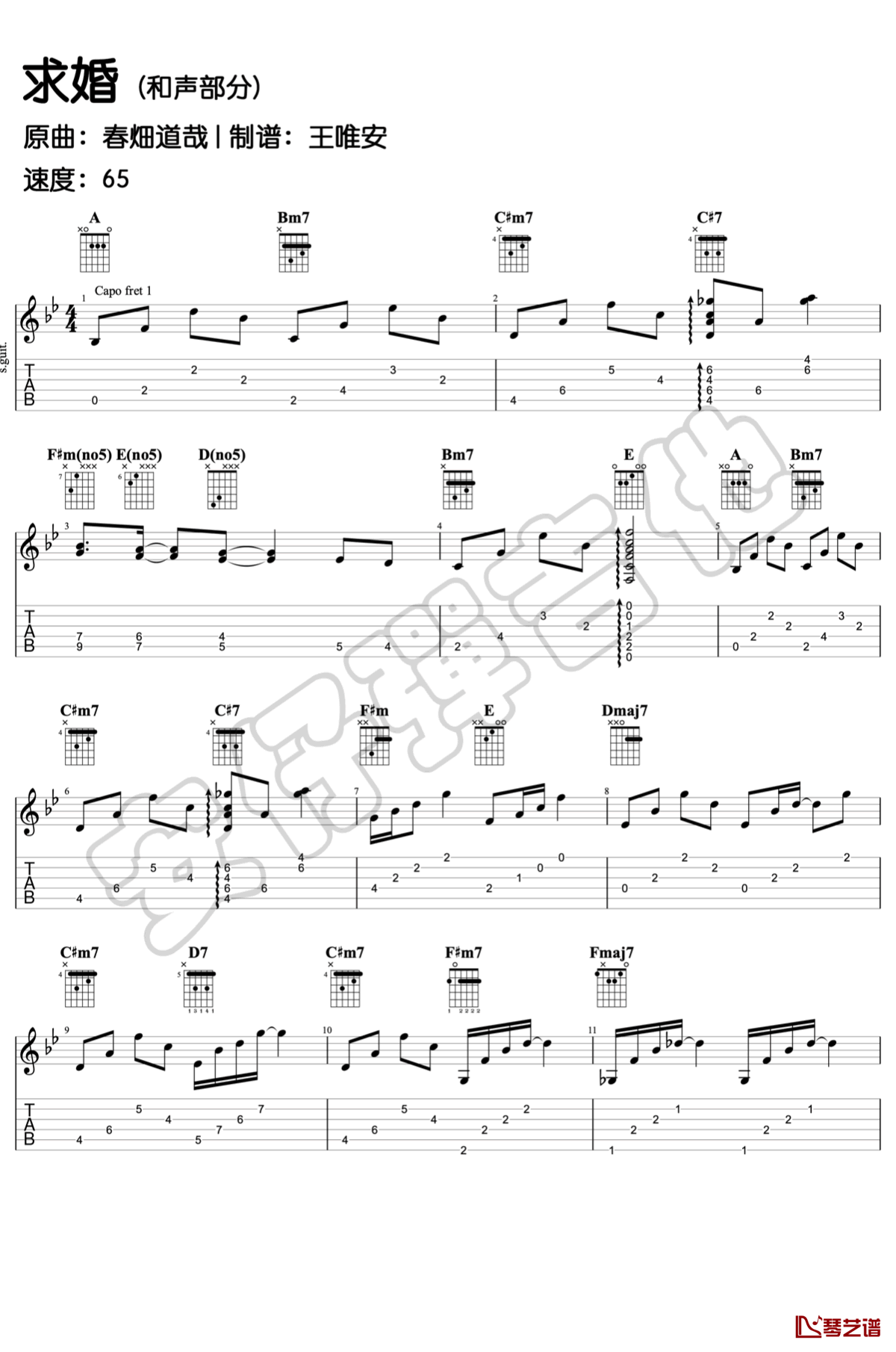 求婚吉他谱 - 春畑道哉 - 吉他独奏谱