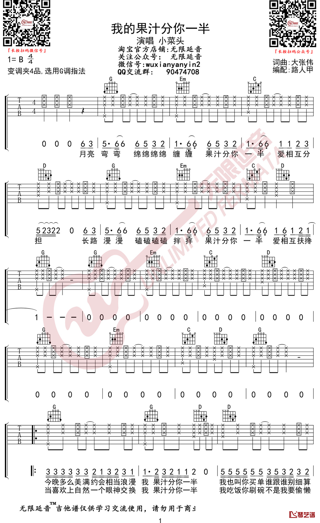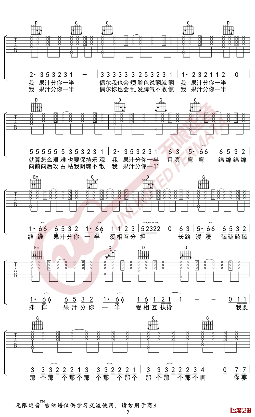 当前位置:琴谱网>吉他弹唱>果汁分你一半