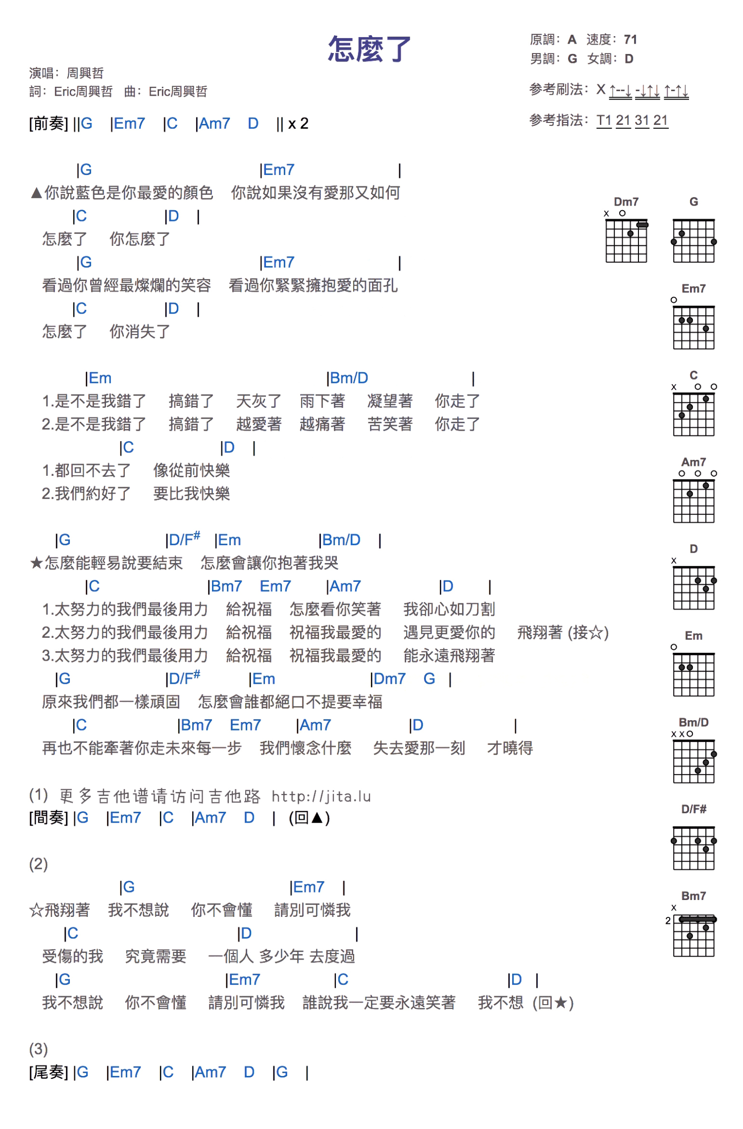怎么了吉他谱 - 周兴哲 - G调吉他弹唱谱 - 和弦谱
