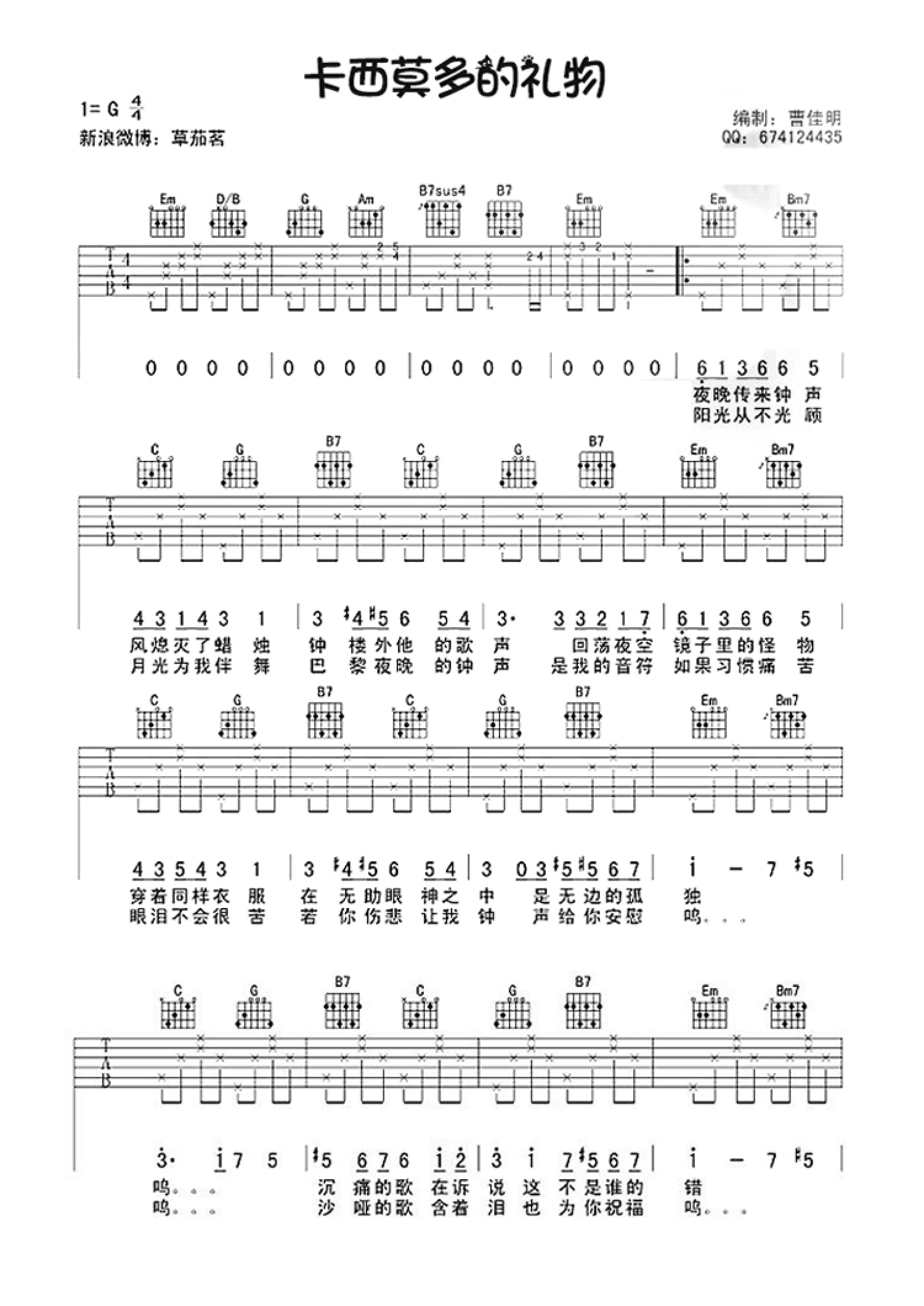 吉他弹唱G调来源:曹佳明4315 浏览2019-12-15 16:17发布图谱共2页