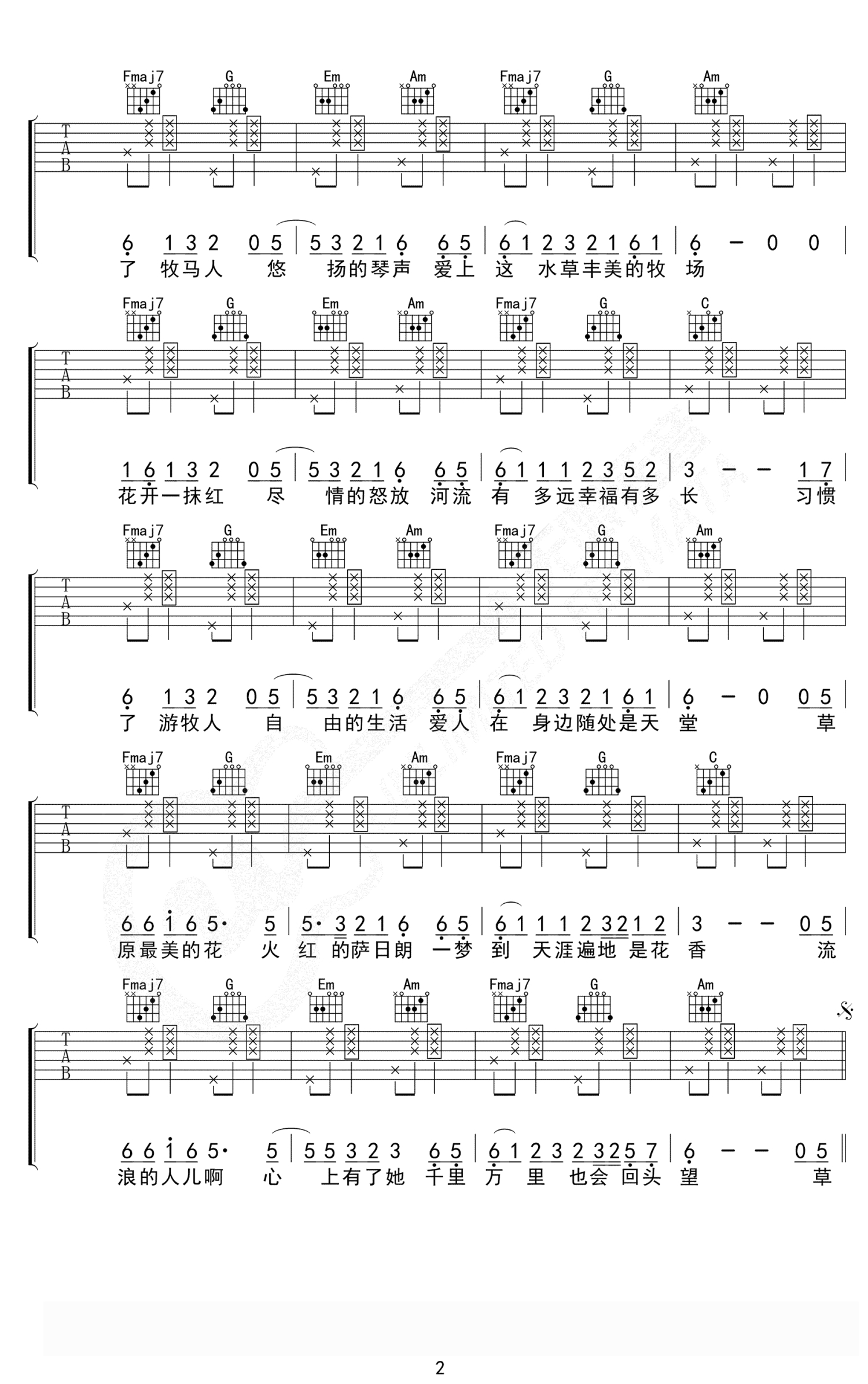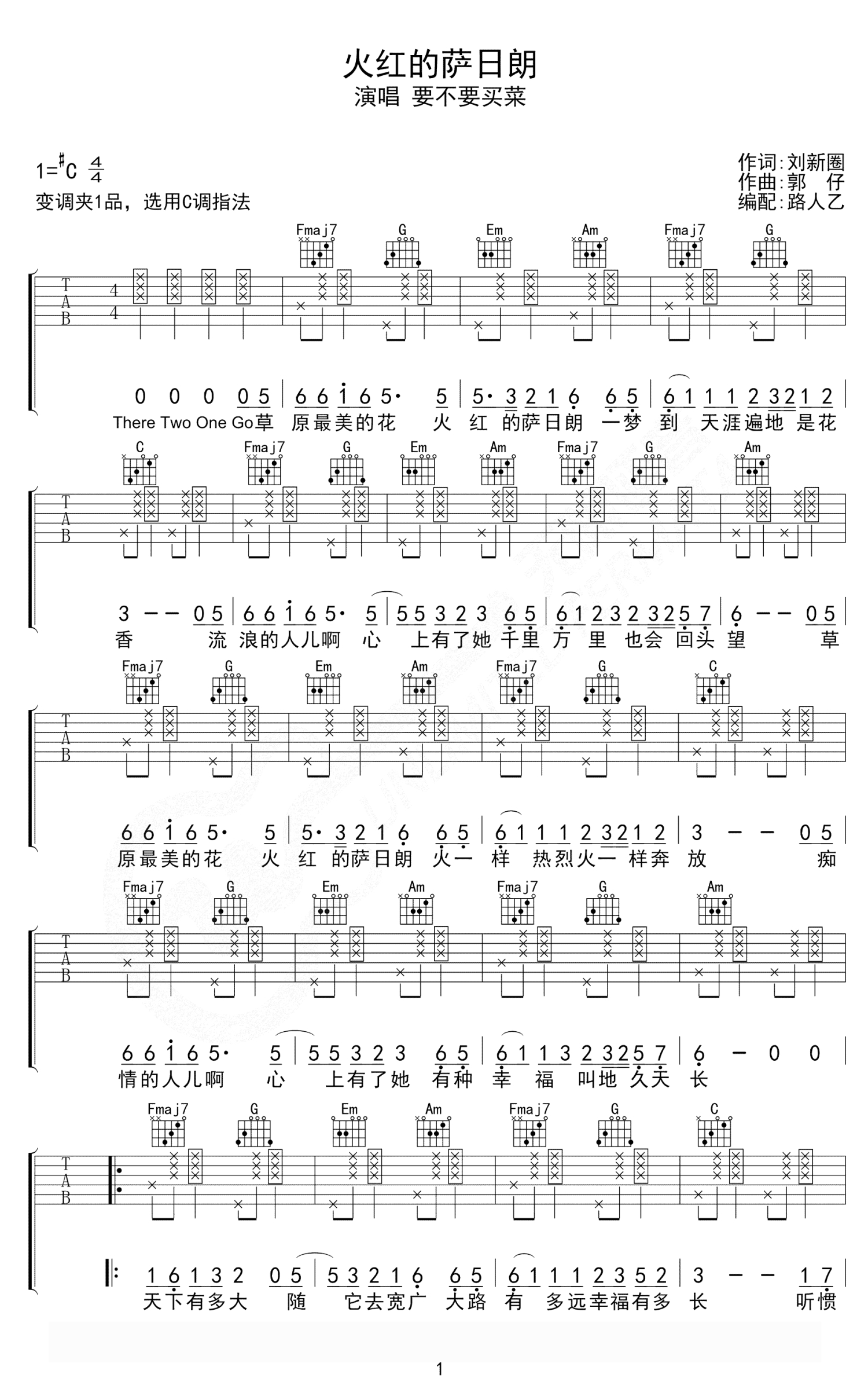 火红的萨日朗吉他谱 - 要不要买菜/乌兰托娅 - C调吉他弹唱谱