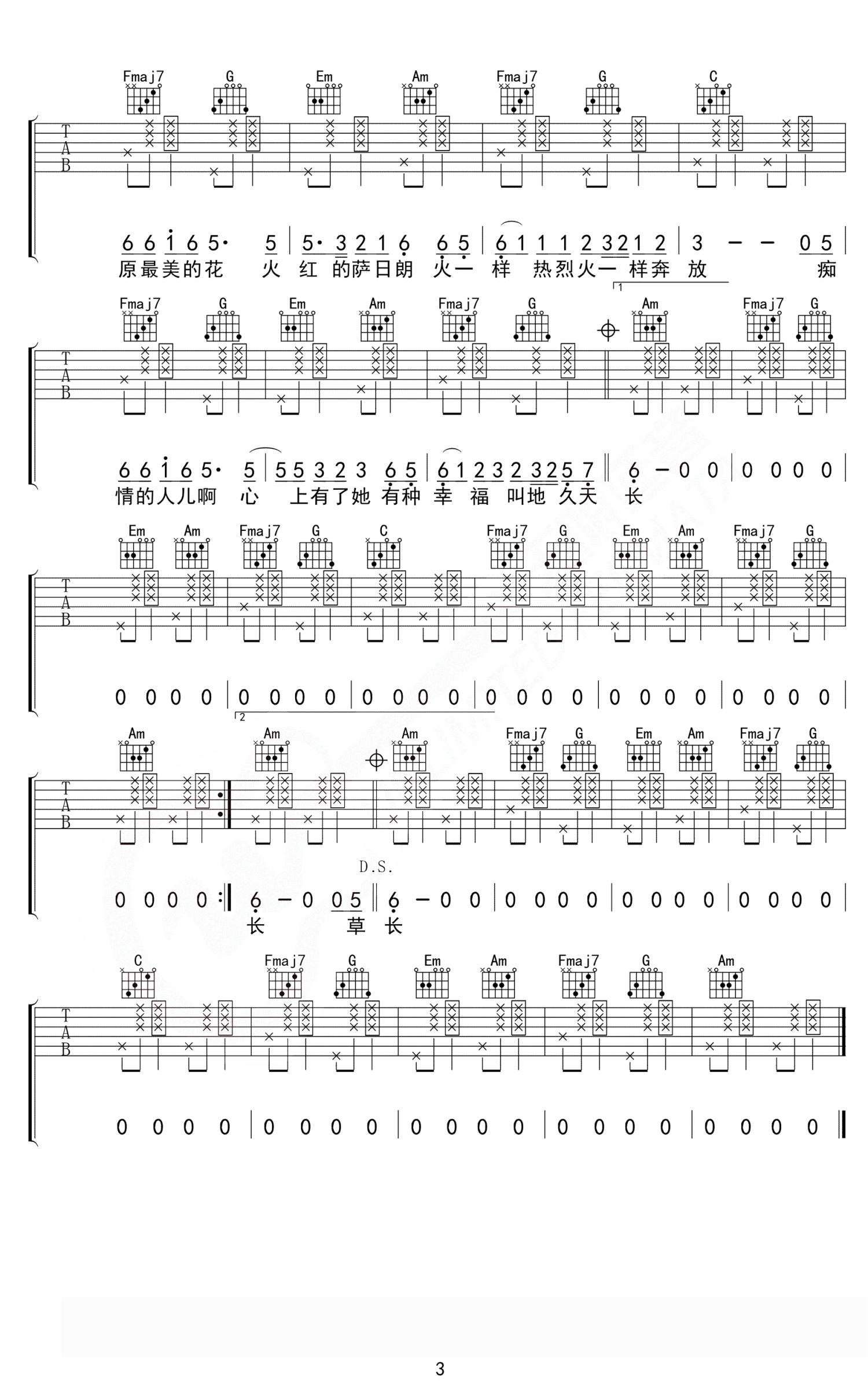 当前位置:琴谱网>吉他弹唱>火红的萨日朗