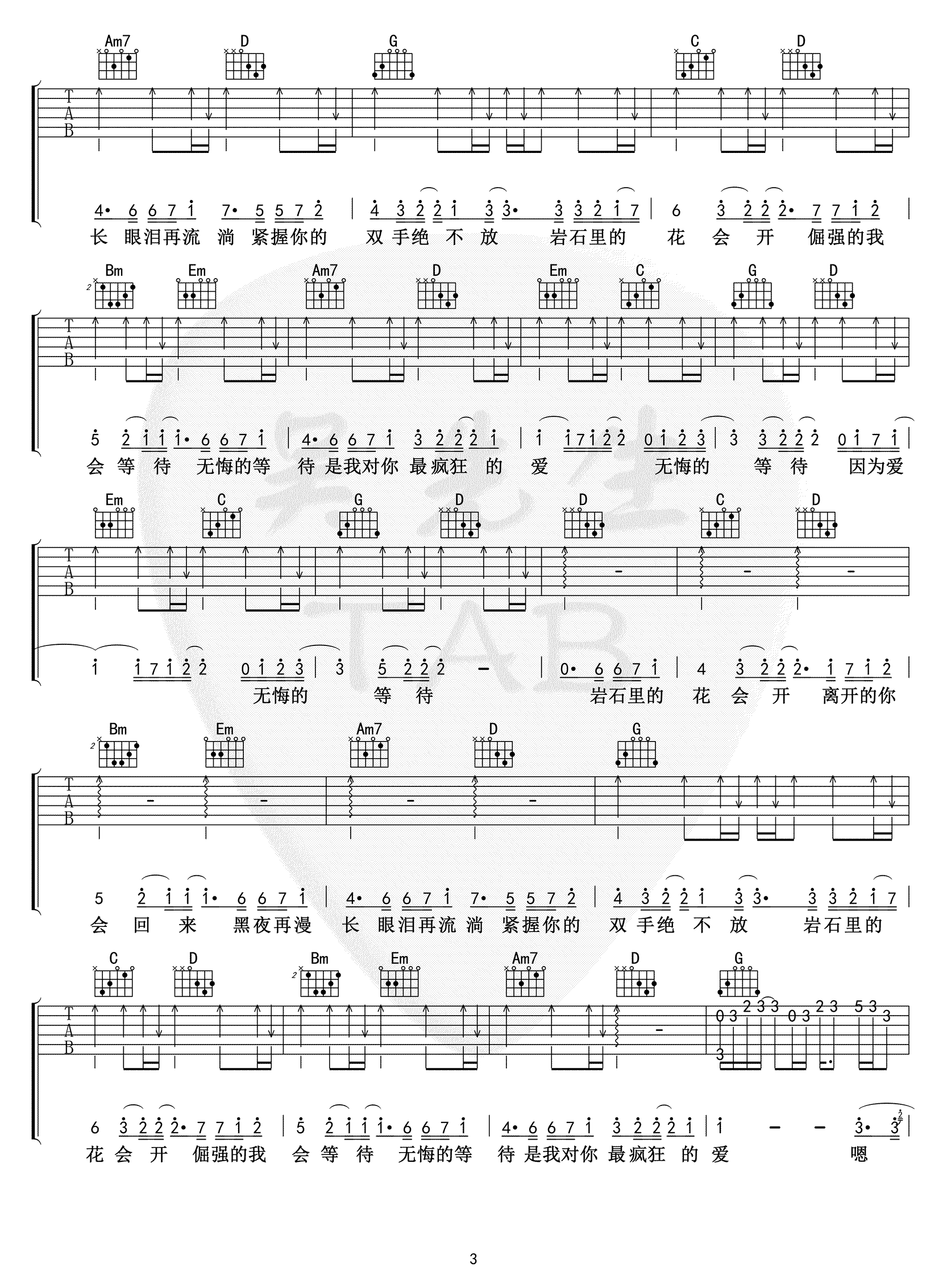 当前位置:琴谱网>吉他弹唱>岩石里的花