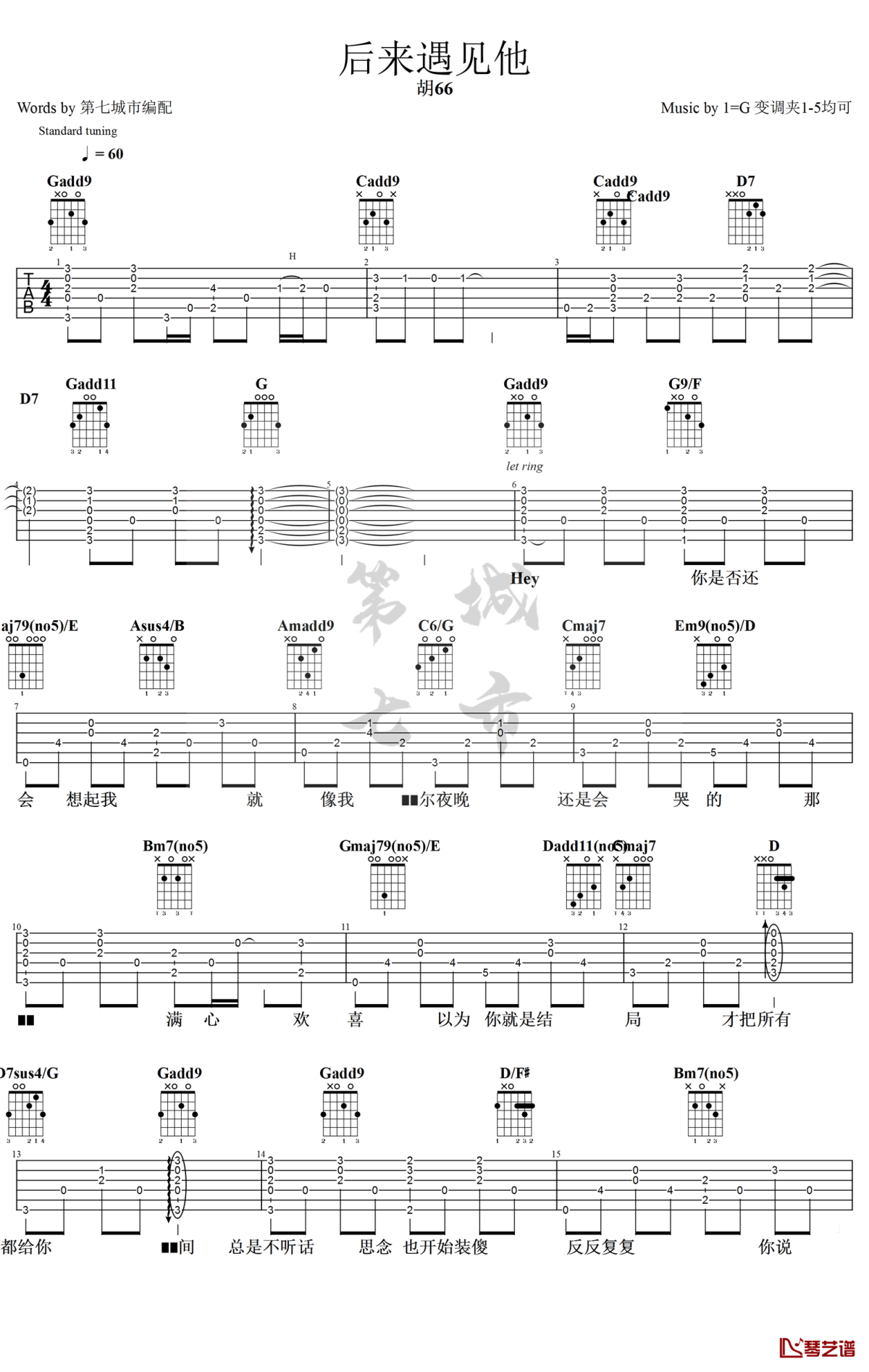 后来遇见他吉他谱 - 胡66 - G调吉他弹唱谱