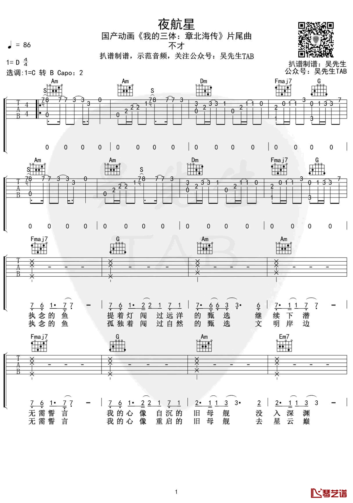 曲谱介绍: 不才《我的三体章北海传》吉他弹唱谱,共有4张高清图谱。