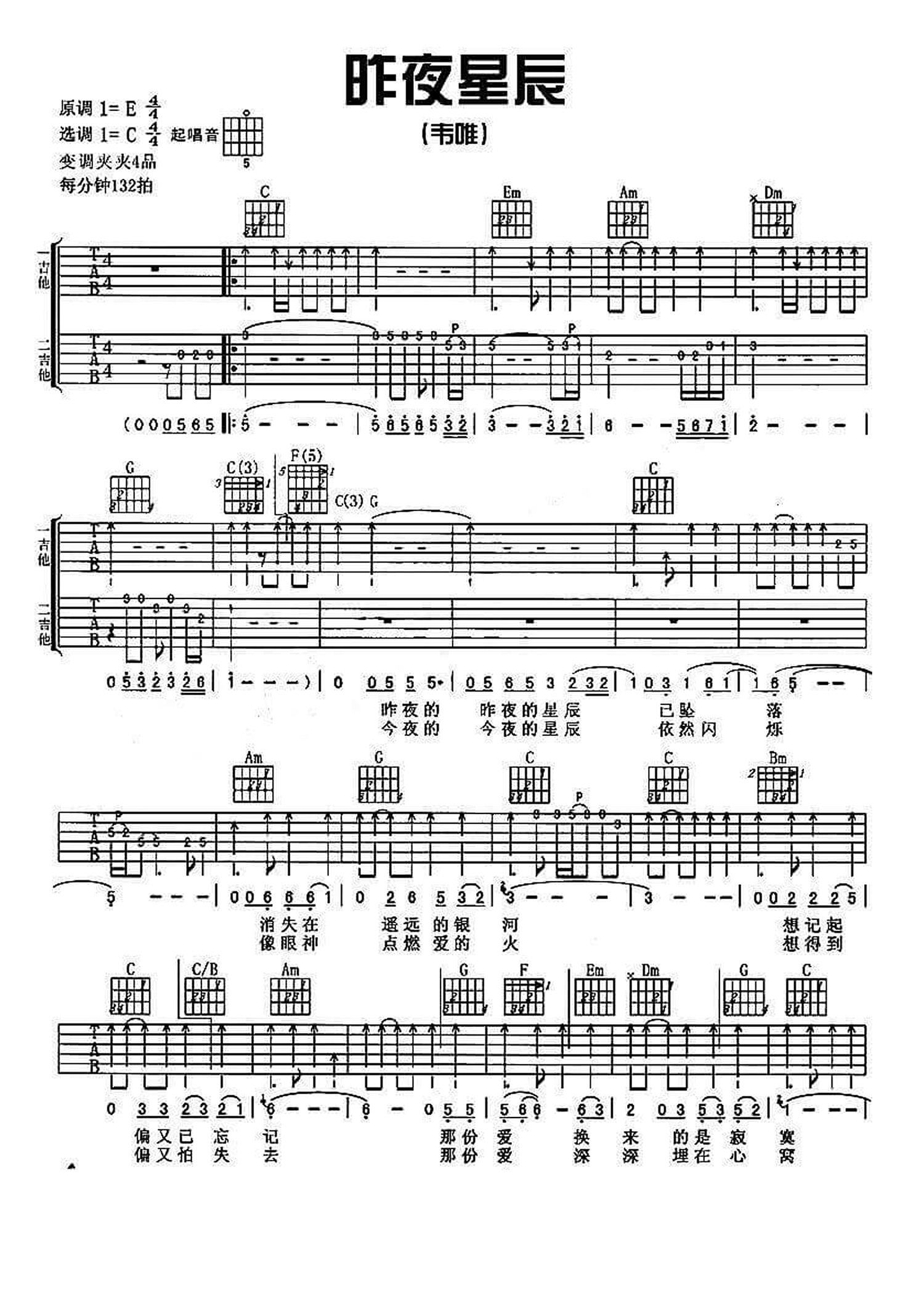 当前位置:琴谱网>吉他弹唱>昨夜星辰