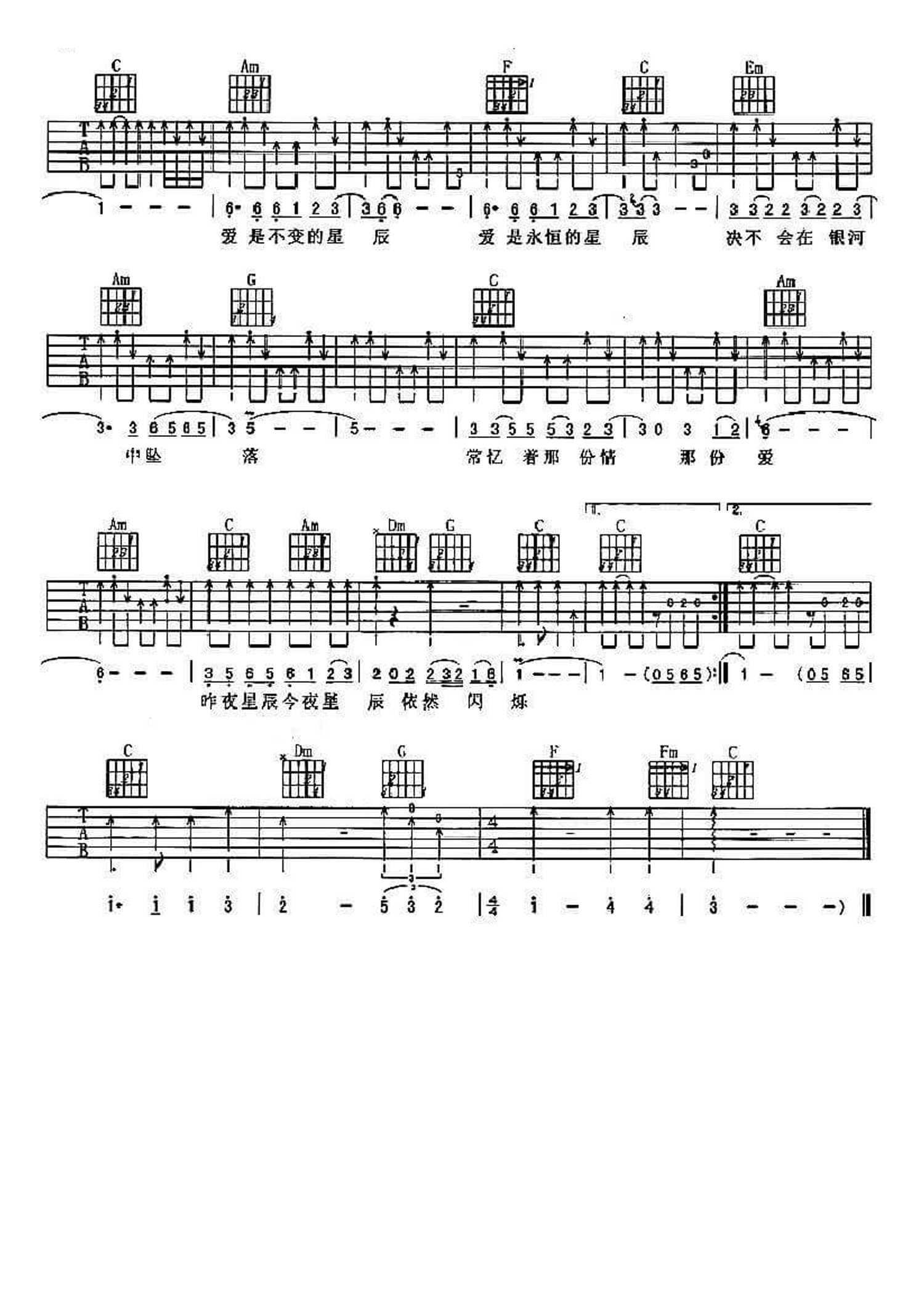 昨夜星辰吉他谱 - 林淑蓉(高胜美) - C调吉他弹唱谱