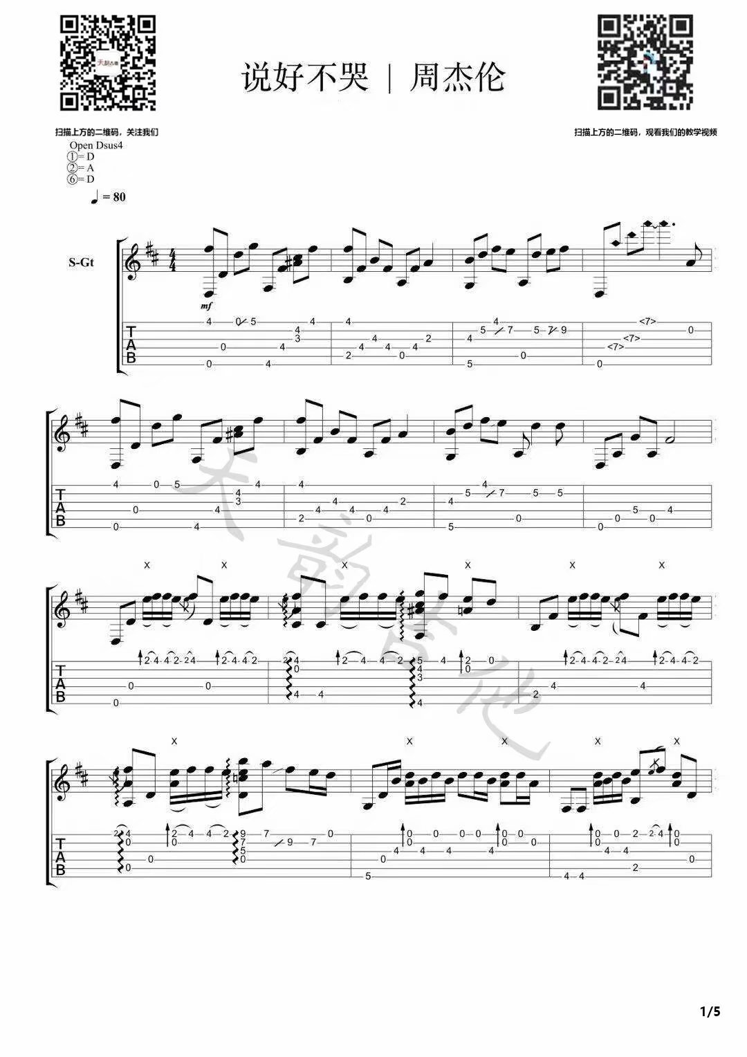 曲谱介绍: 周杰伦《说好不哭》吉他弹唱谱,共有5张高清图谱。