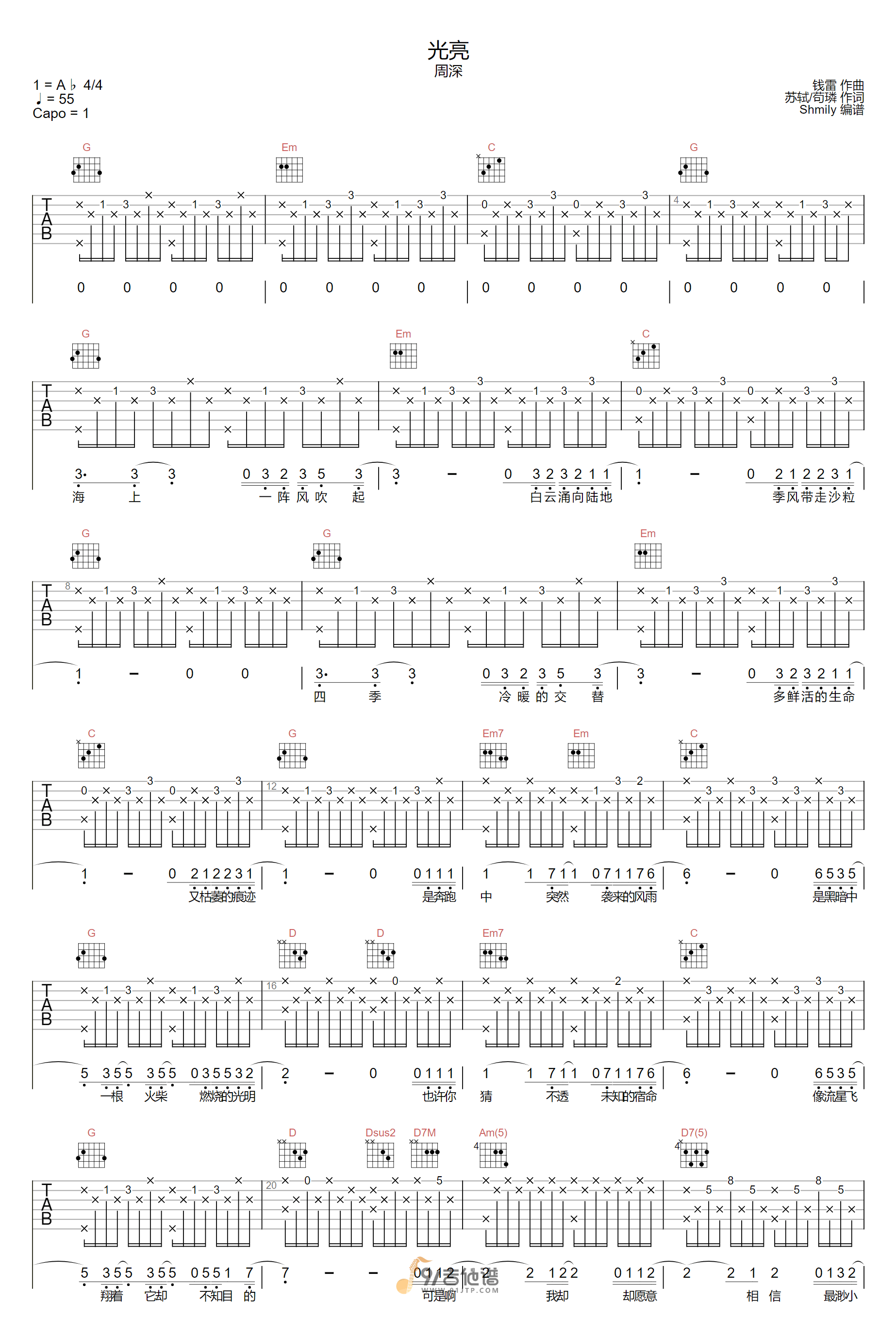 光亮吉他谱 - 周深 - G调吉他弹唱谱 - 原版