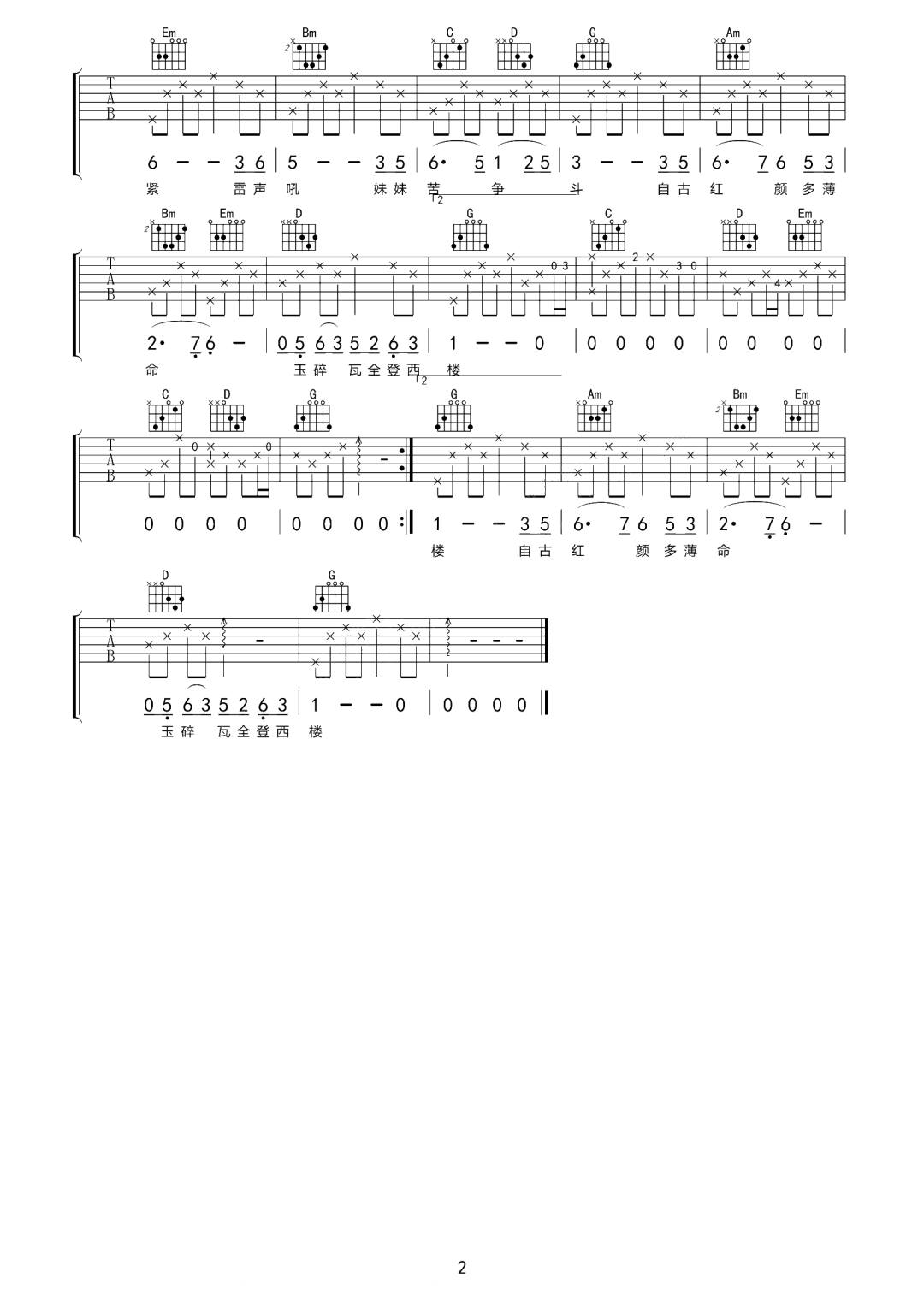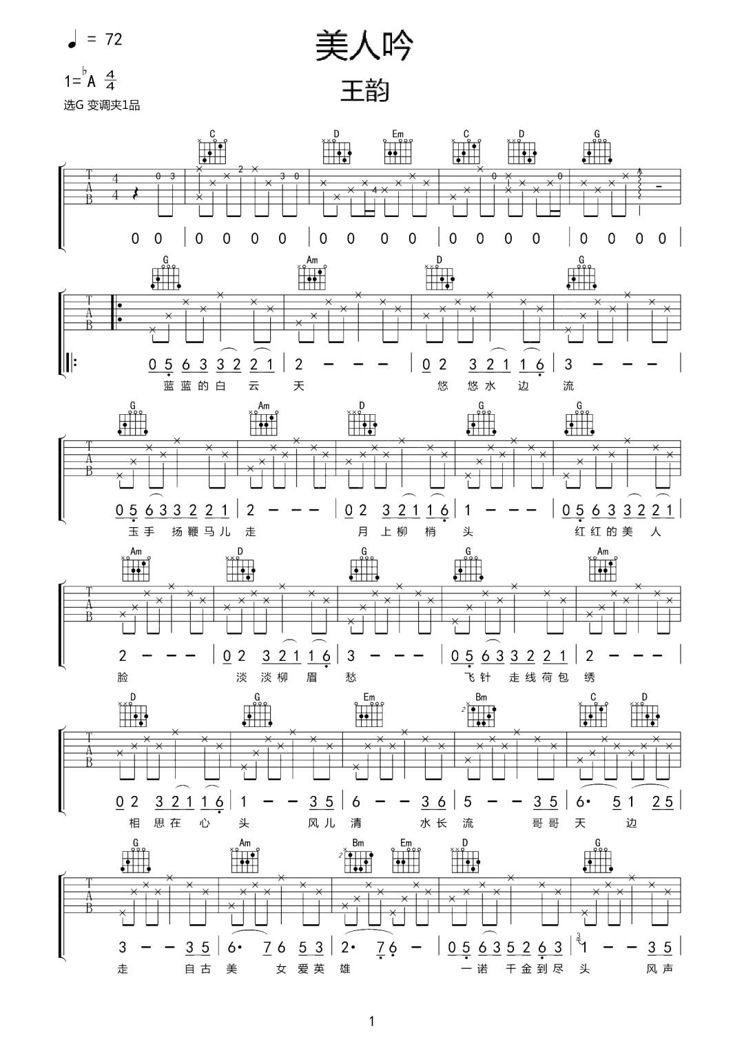 当前位置:琴谱网>吉他弹唱>美人吟