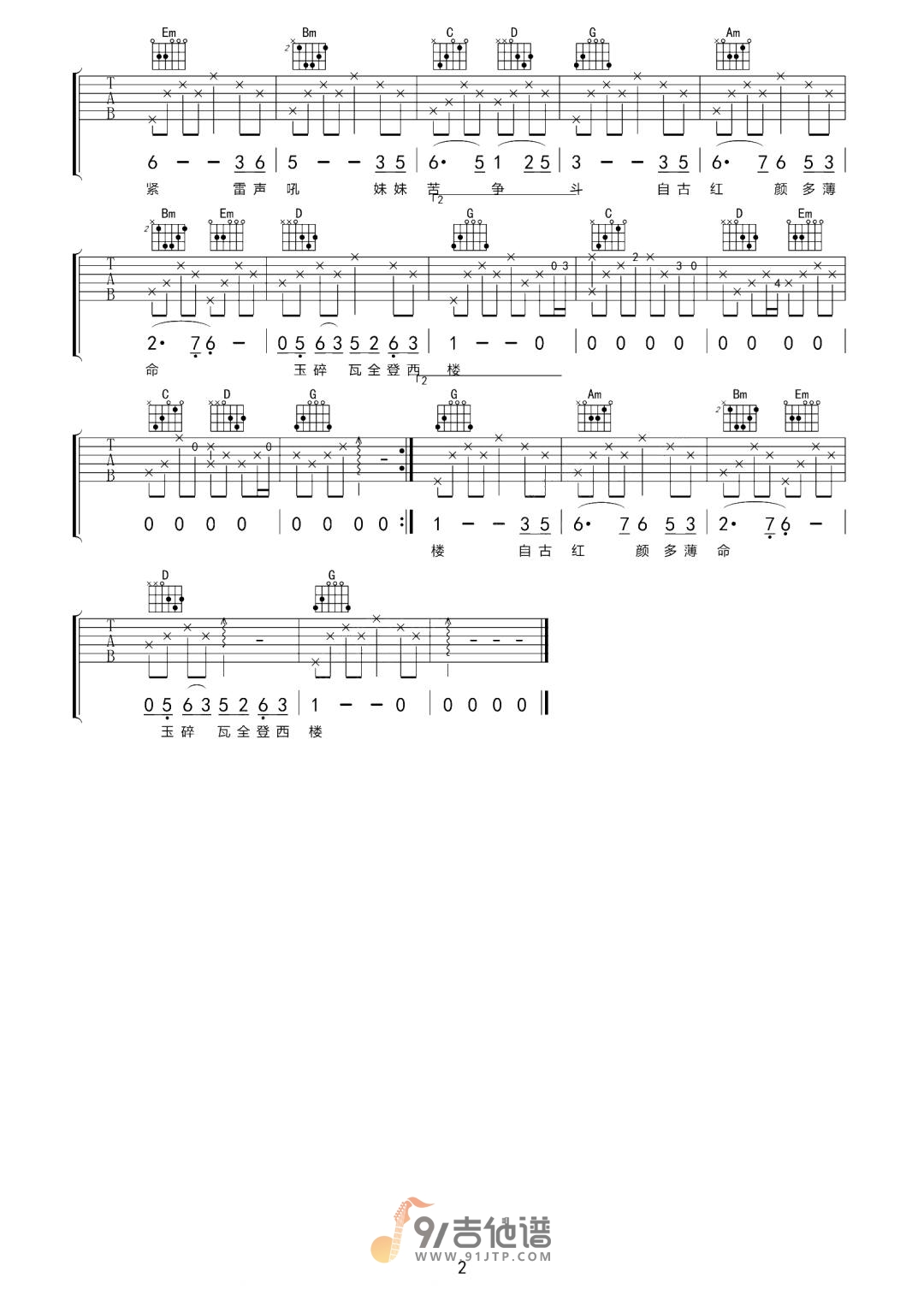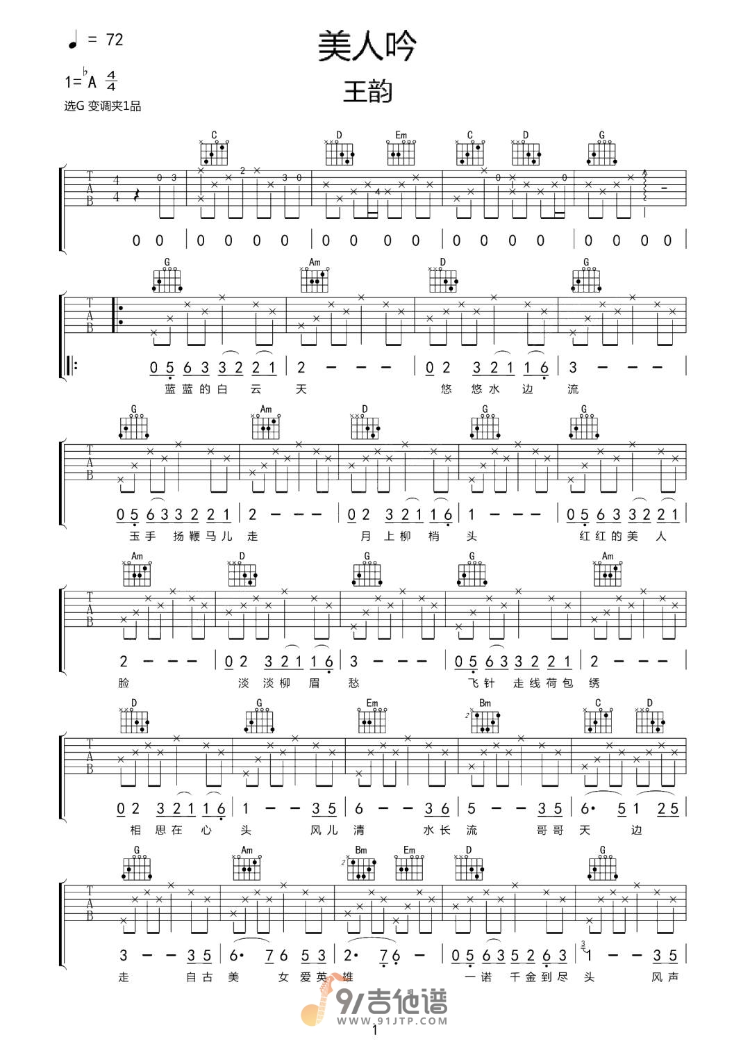 当前位置:琴谱网>吉他弹唱>美人吟
