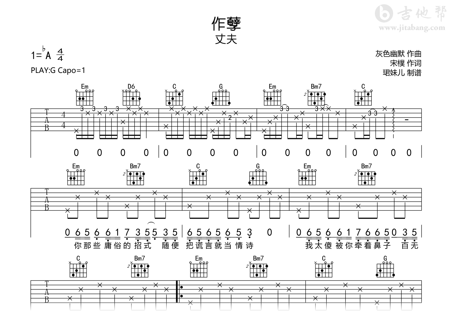 作孽吉他谱 - 丈夫 - G调吉他弹唱谱