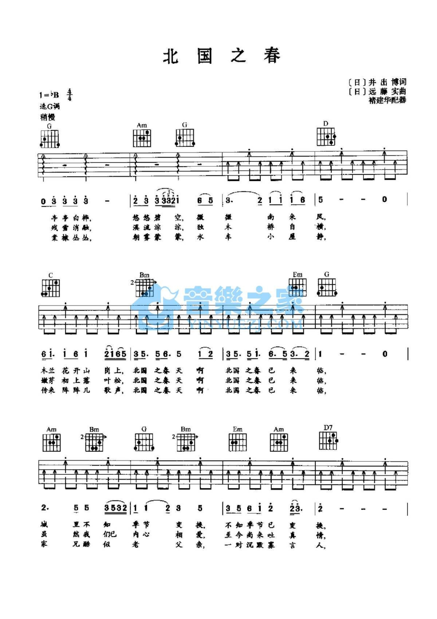琴谱网为您精心推荐 北国之春 高清图谱