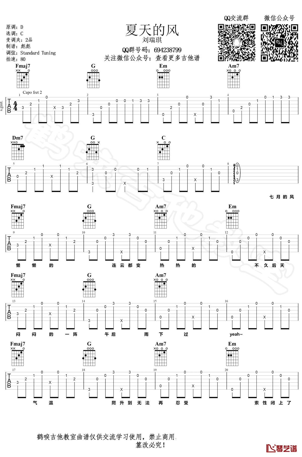 曲谱介绍: 刘瑞琦/温岚《夏天的风》吉他弹唱谱,共有4张高清图谱。